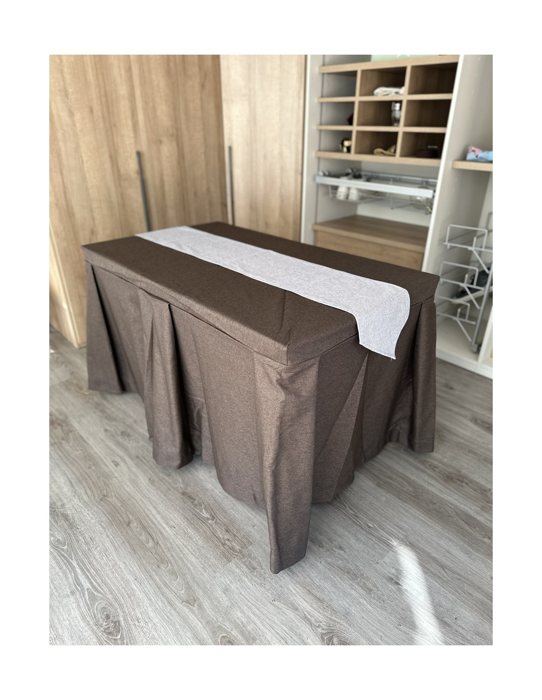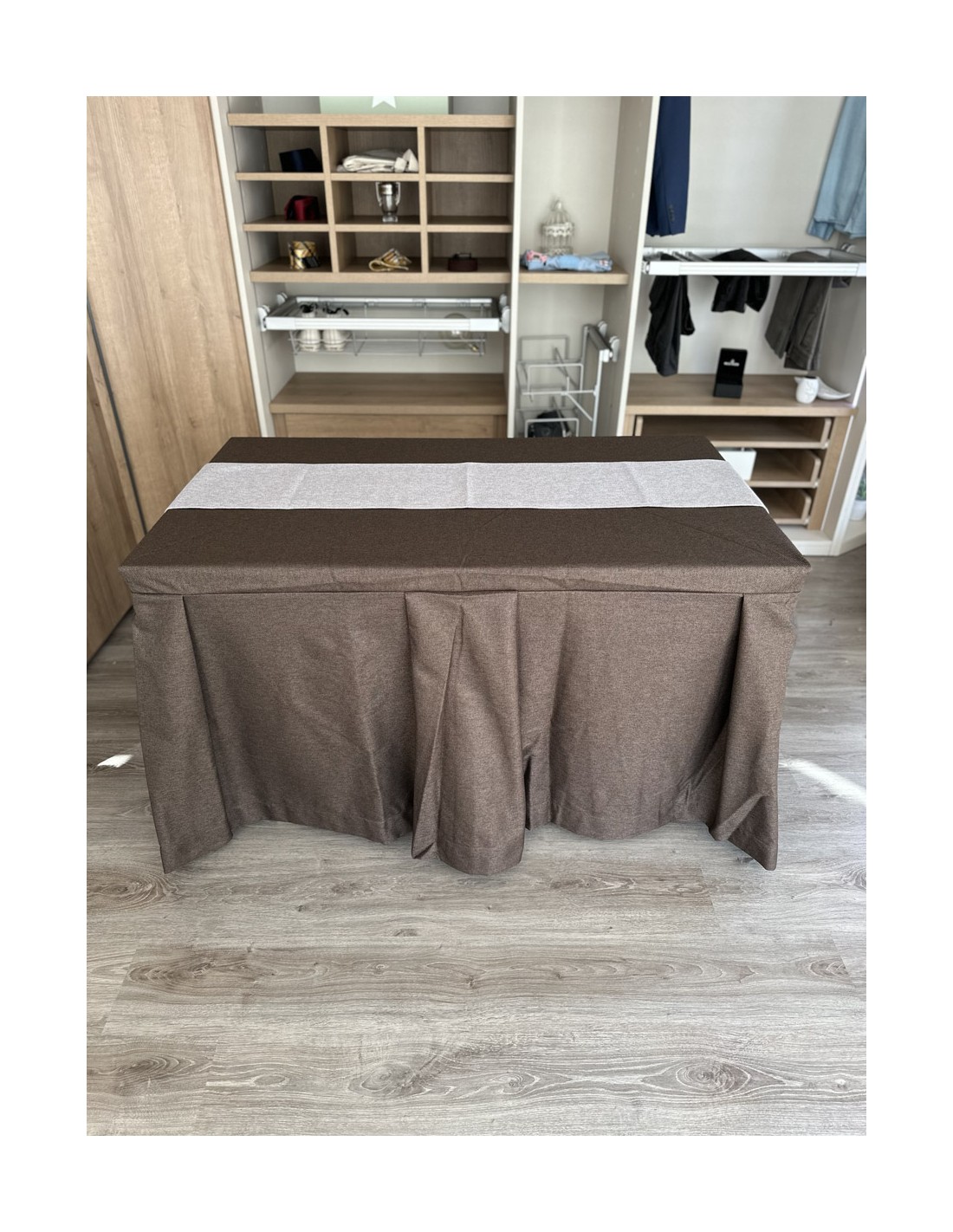 Pack Mesa + Ropa de Mesa Camilla Moderna Antimanchas color Chocolate con Camino Gris Plata