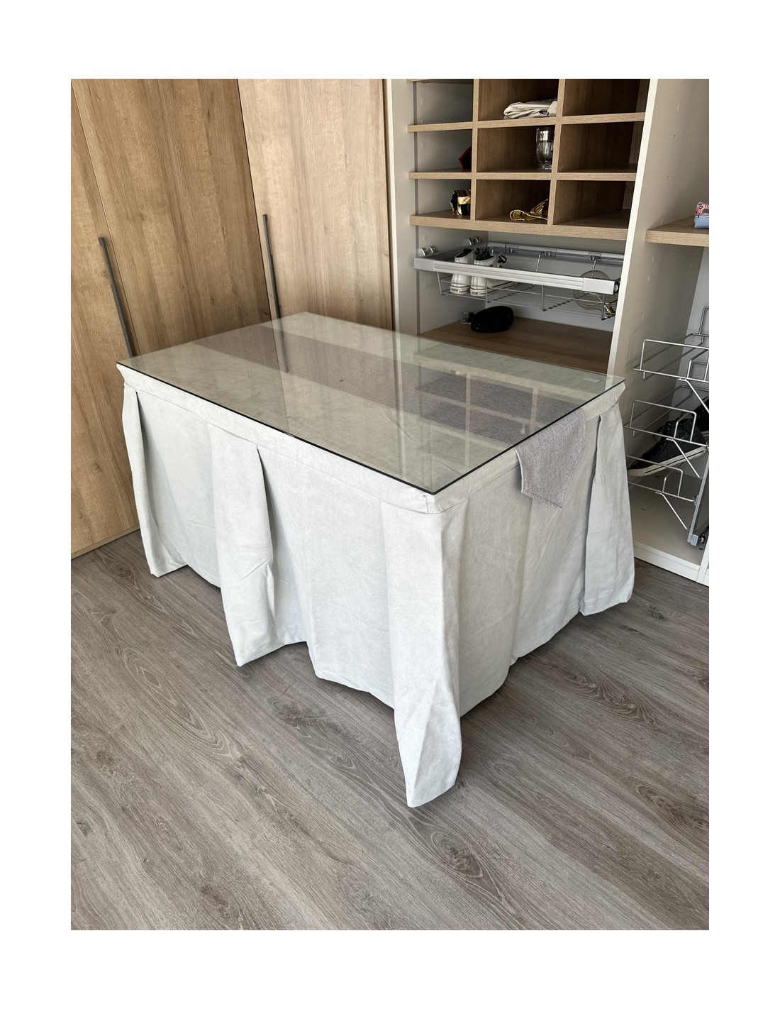 Pack Mesa + Ropa de Mesa Camilla Moderna Antimanchas color Gris Perla con Camino Gris Plata