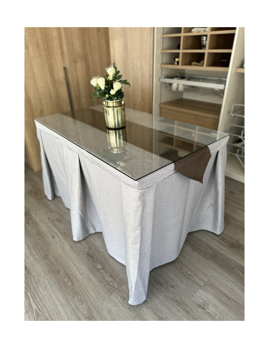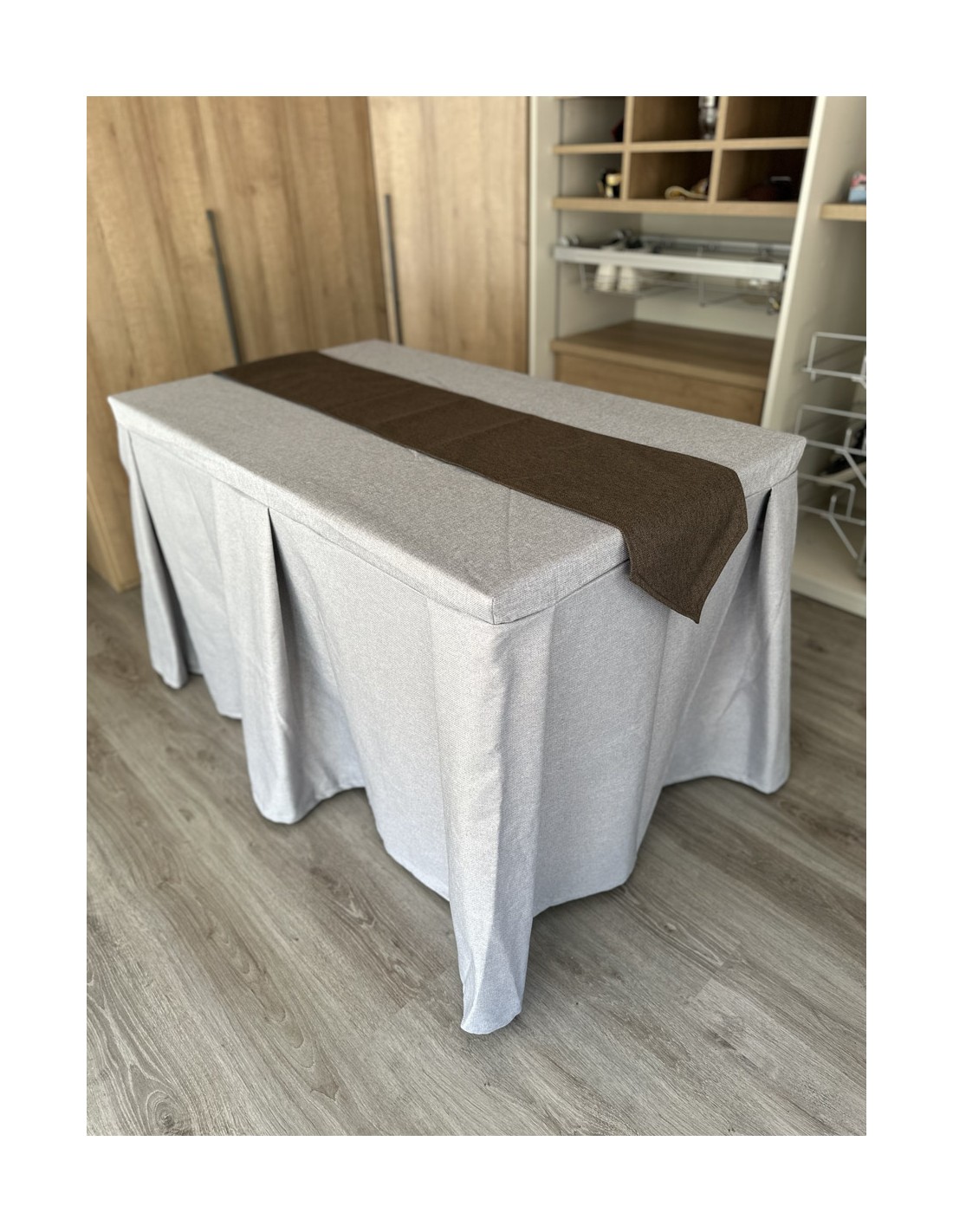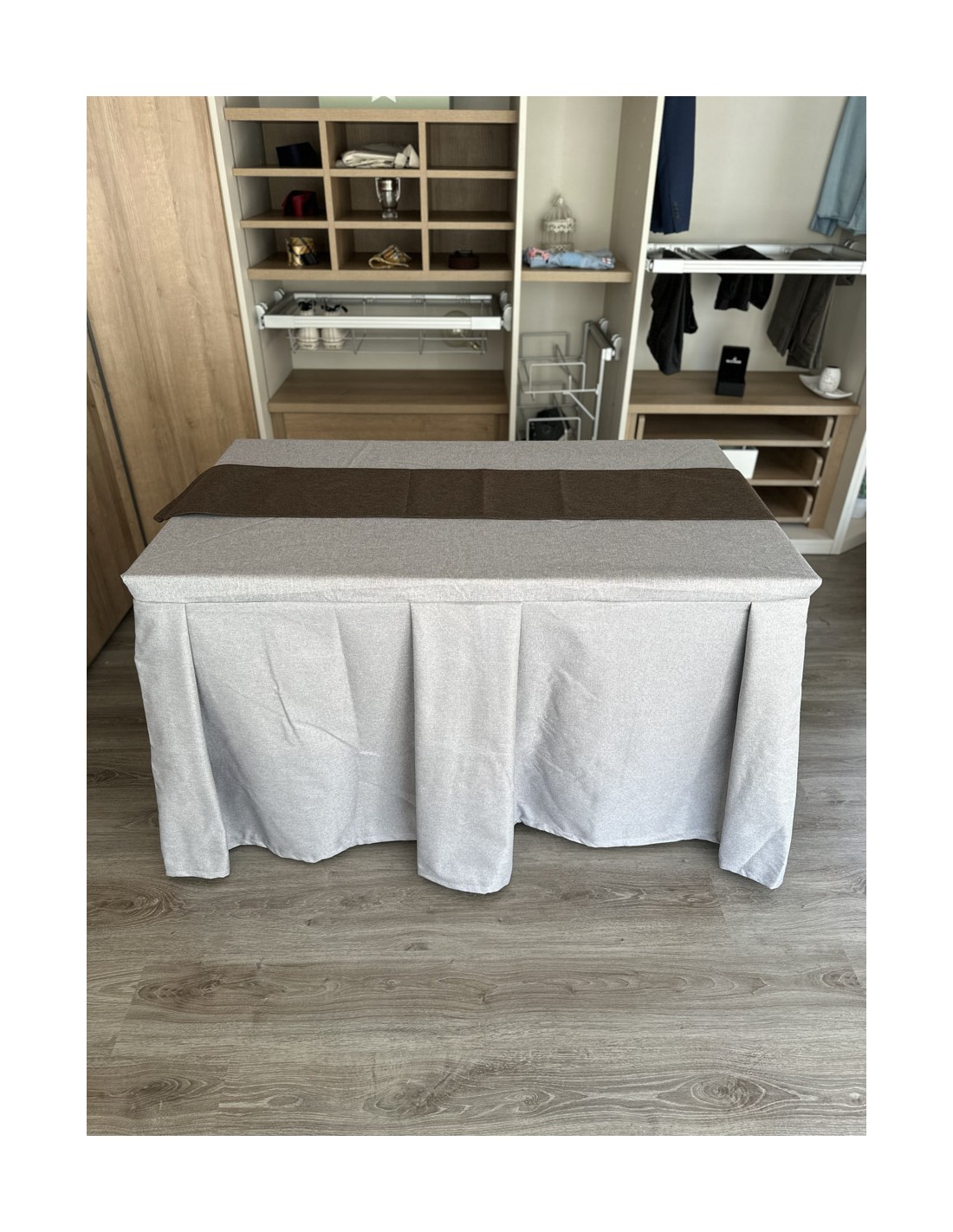 Pack Mesa + Ropa de Mesa Camilla Moderna Antimanchas color Gris Plata con Camino Chocolate