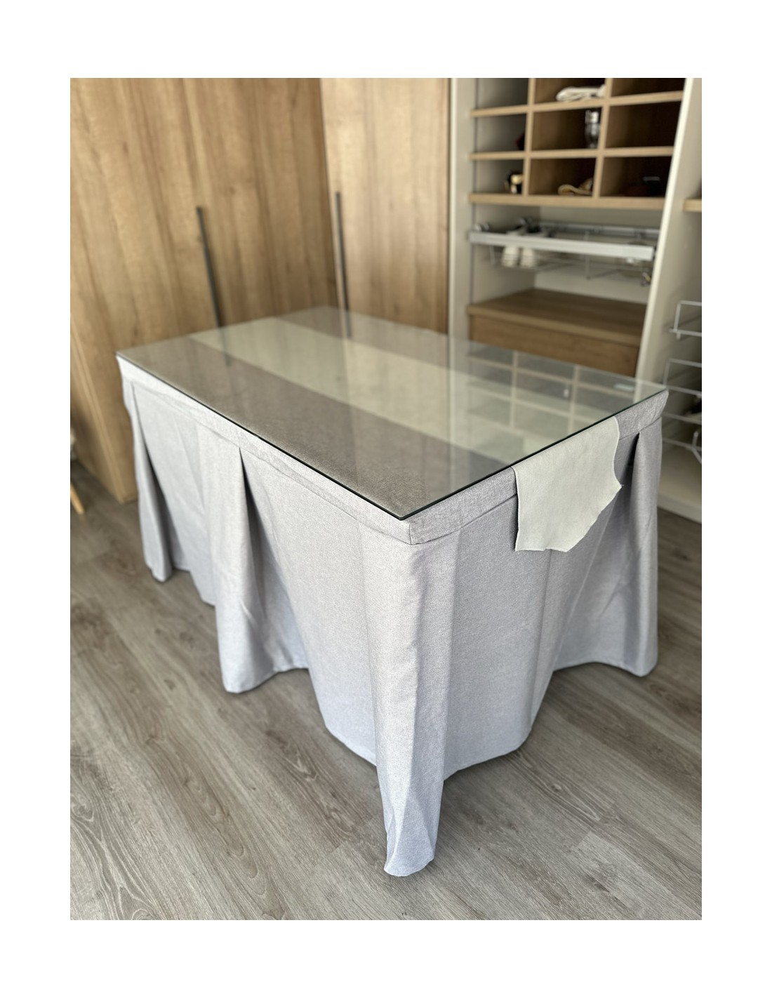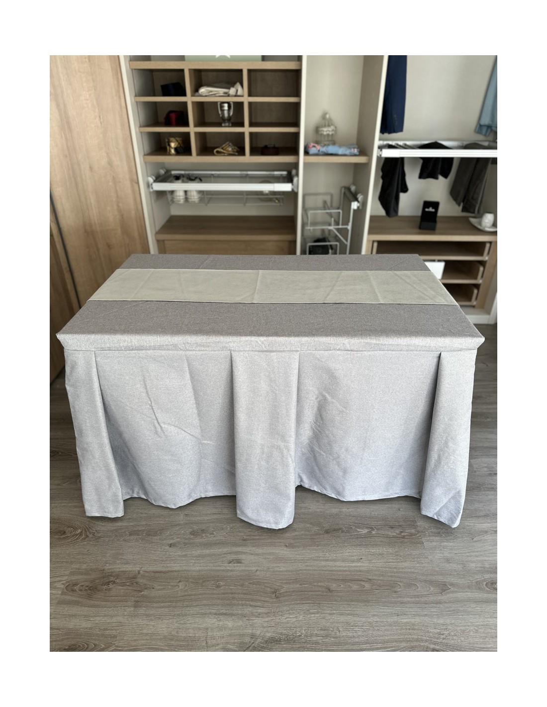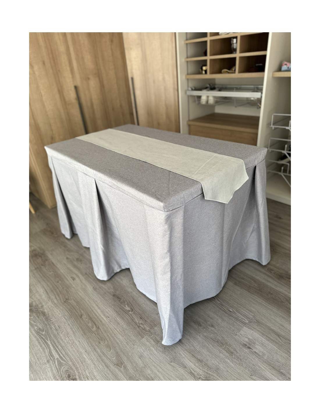 Pack Mesa + Ropa de Mesa Camilla Moderna Antimanchas color Gris Plata con Camino Gris Perla