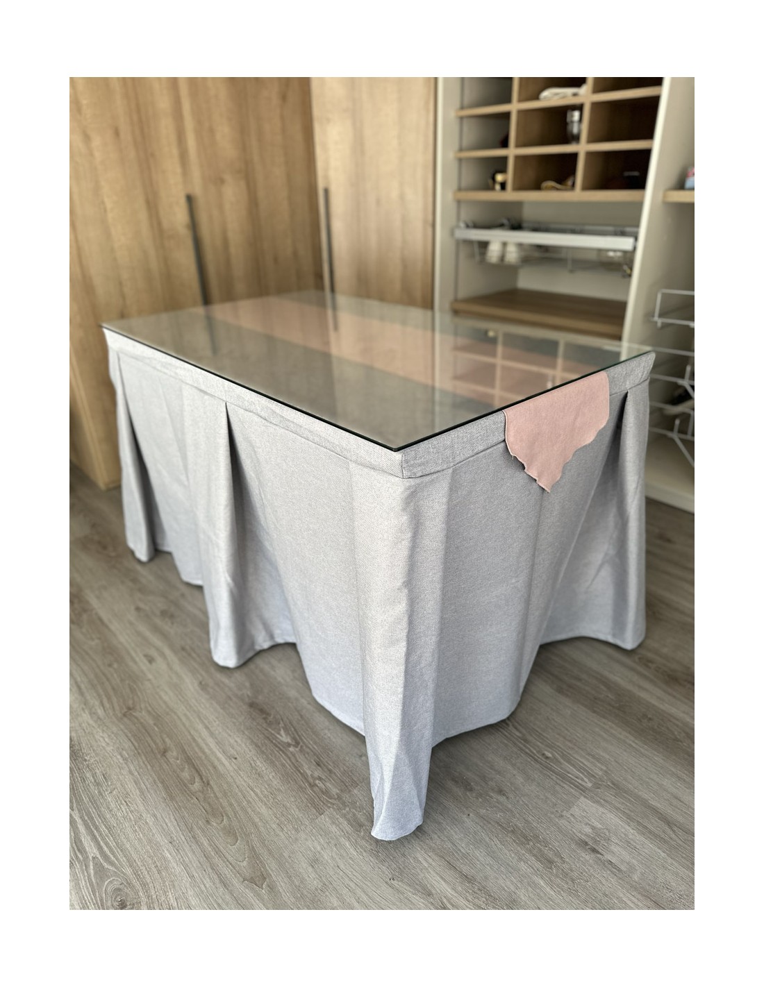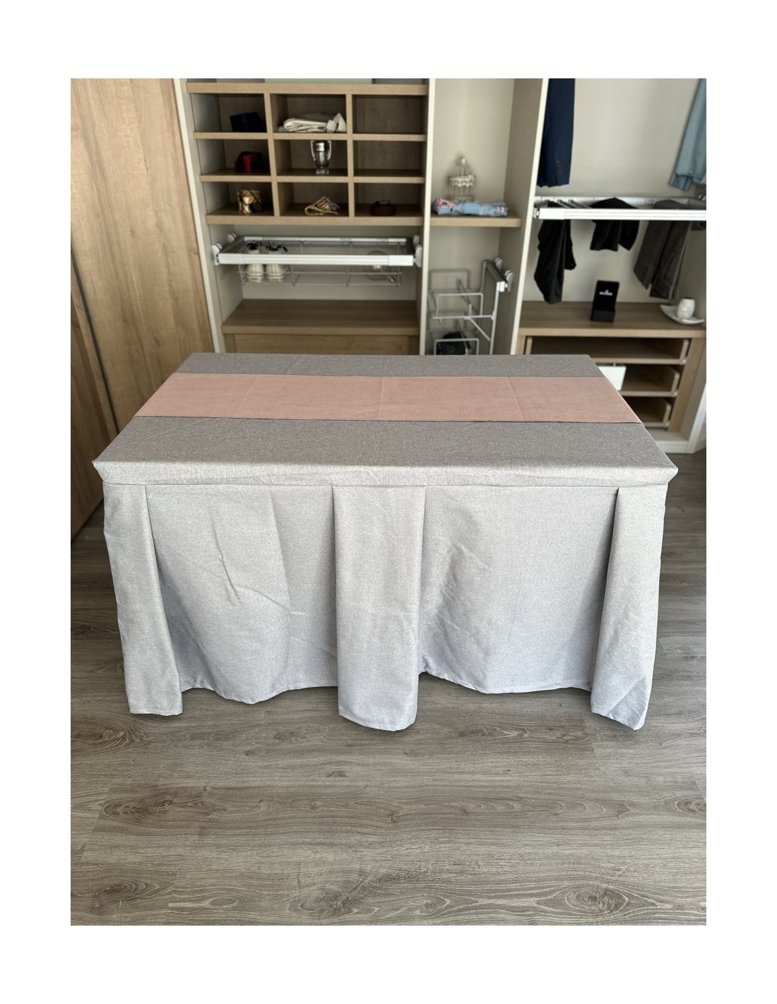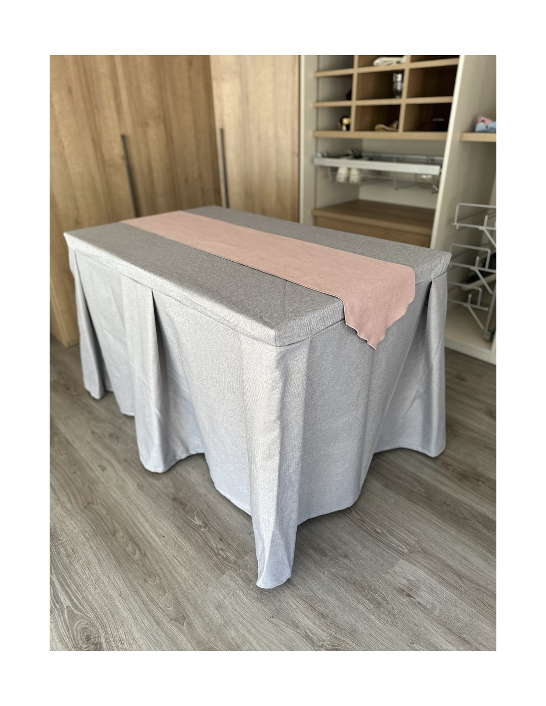 Pack Mesa + Ropa de Mesa Camilla Moderna Antimanchas color Gris Plata con Camino Rosa