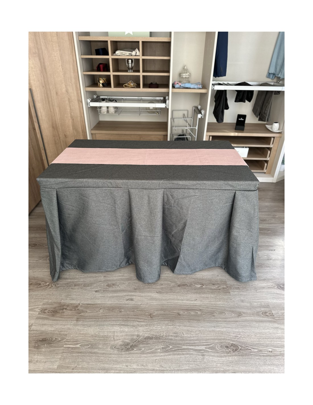 Pack Mesa + Ropa de Mesa Camilla Moderna Antimanchas color Marengo con Camino Rosa