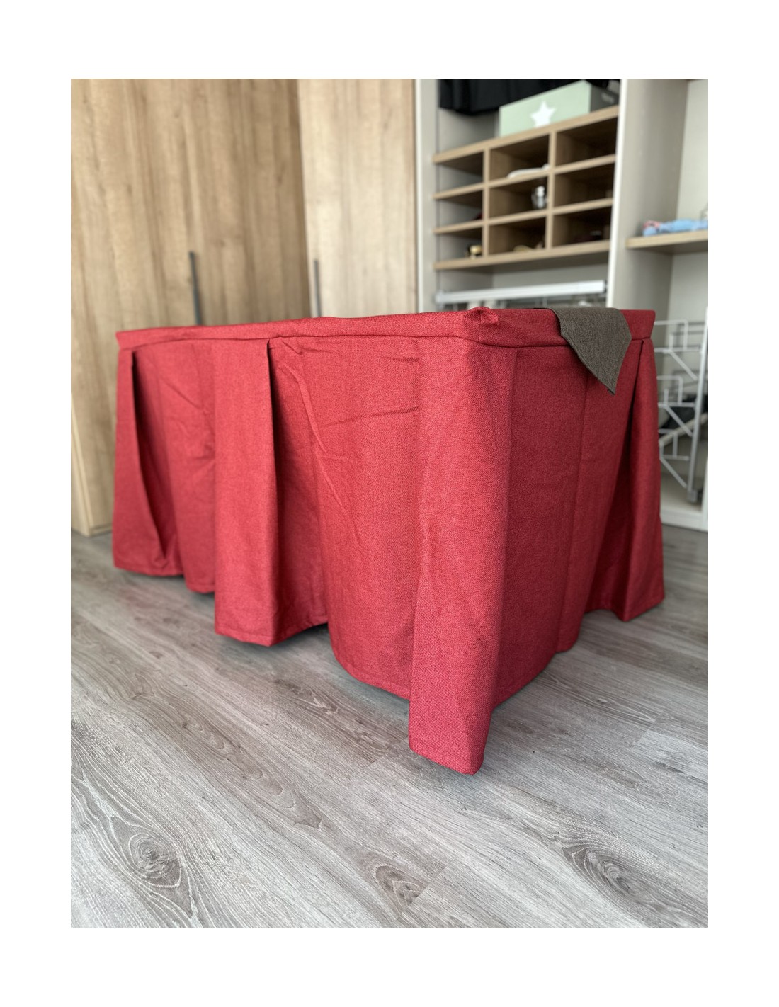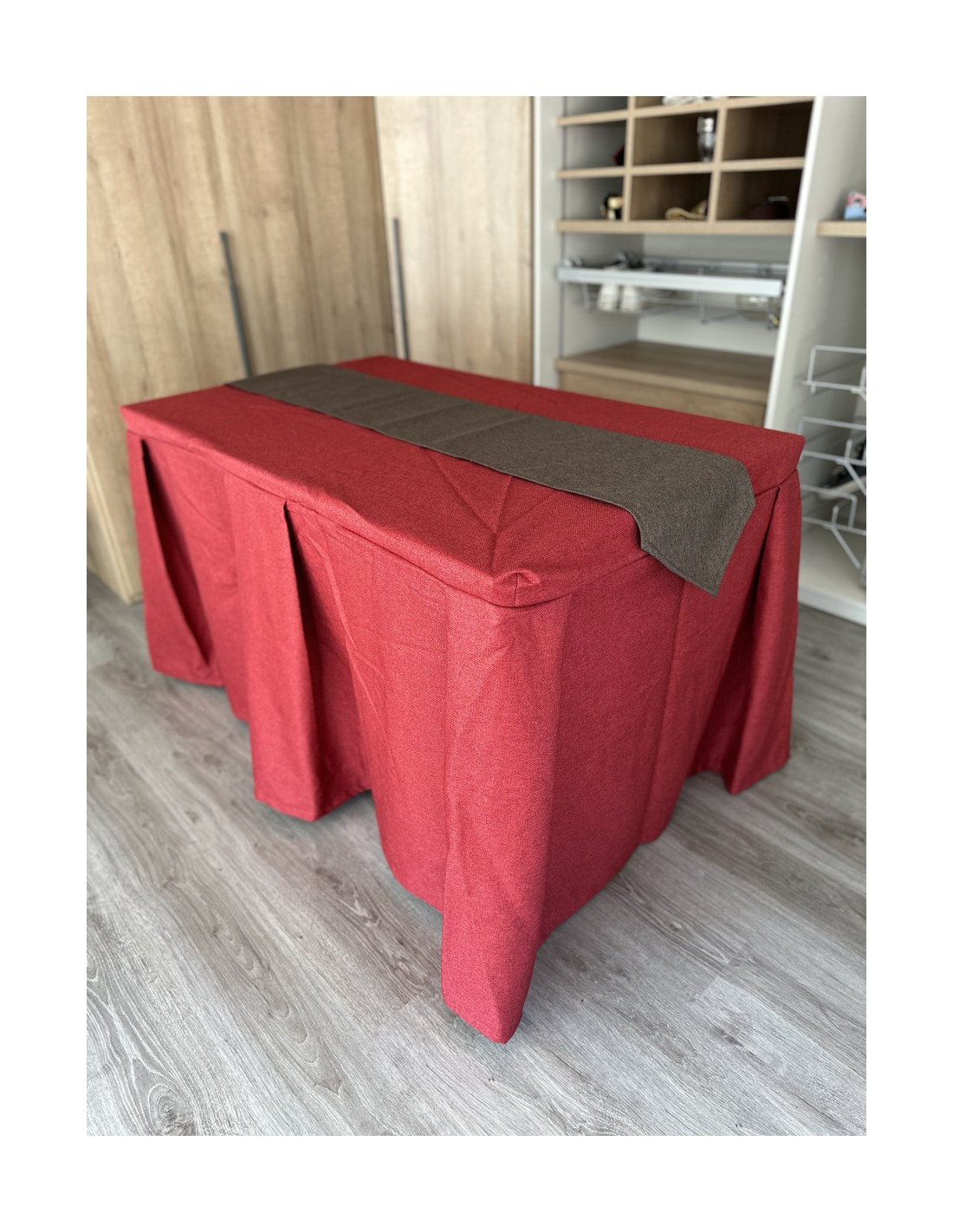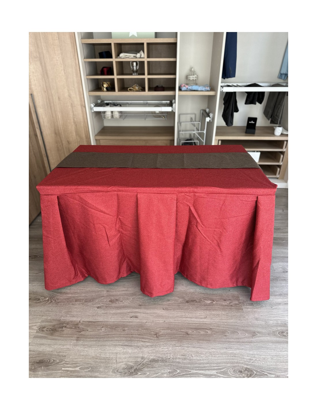 Pack Mesa + Ropa de Mesa Camilla Moderna Antimanchas color Rojo con Camino Chocolate
