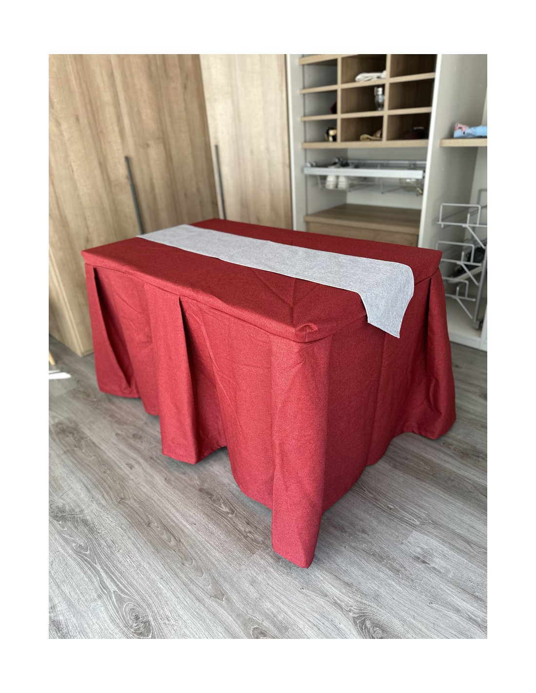 Pack Mesa + Ropa de Mesa Camilla Moderna Antimanchas color Rojo con Camino Gris Plata