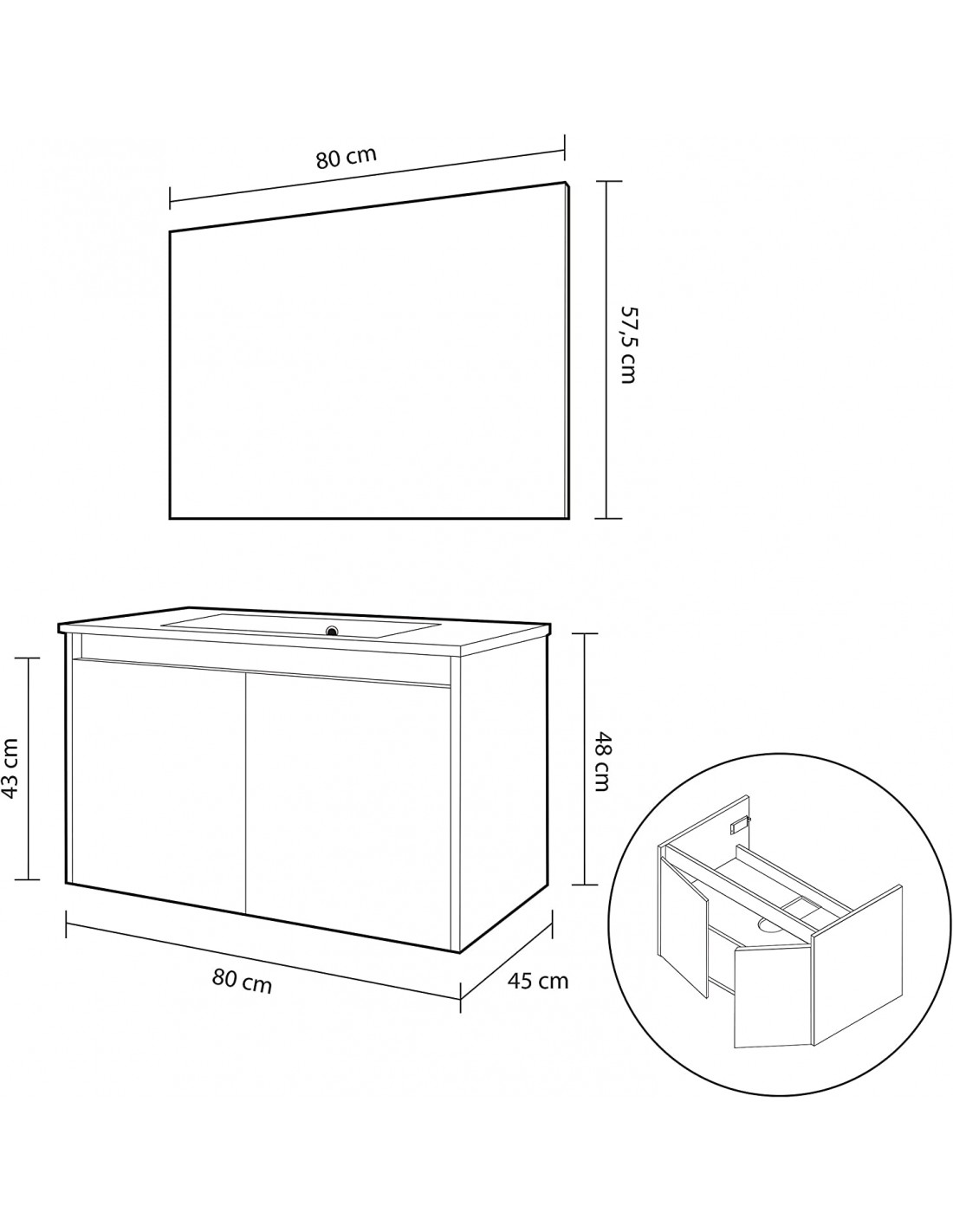 Medidas: 80cm (Ancho) x 48cm (Alto) x 45cm (Fondo)