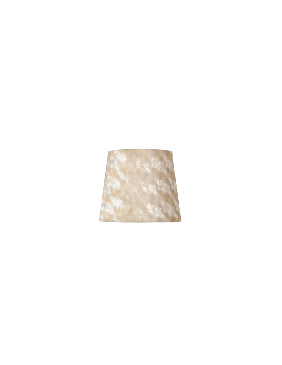 Pantalla serie Fátima de color beis. Realizada en material textil con efecto nacarado y textura suave. Su agarre es en E27. Su medida es 15dx8dx12h cm y está disponible en varios tamaños.