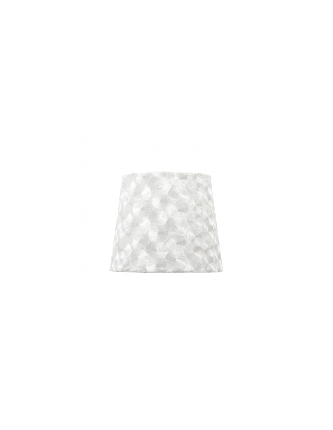 Pantalla serie Fátima de color blanco. Realizada en material textil, de textura suave y con efecto nacarado. Posee un portalámparas E27. Su medida es 20dx10dx16h cm y está disponible en varios tamaños.