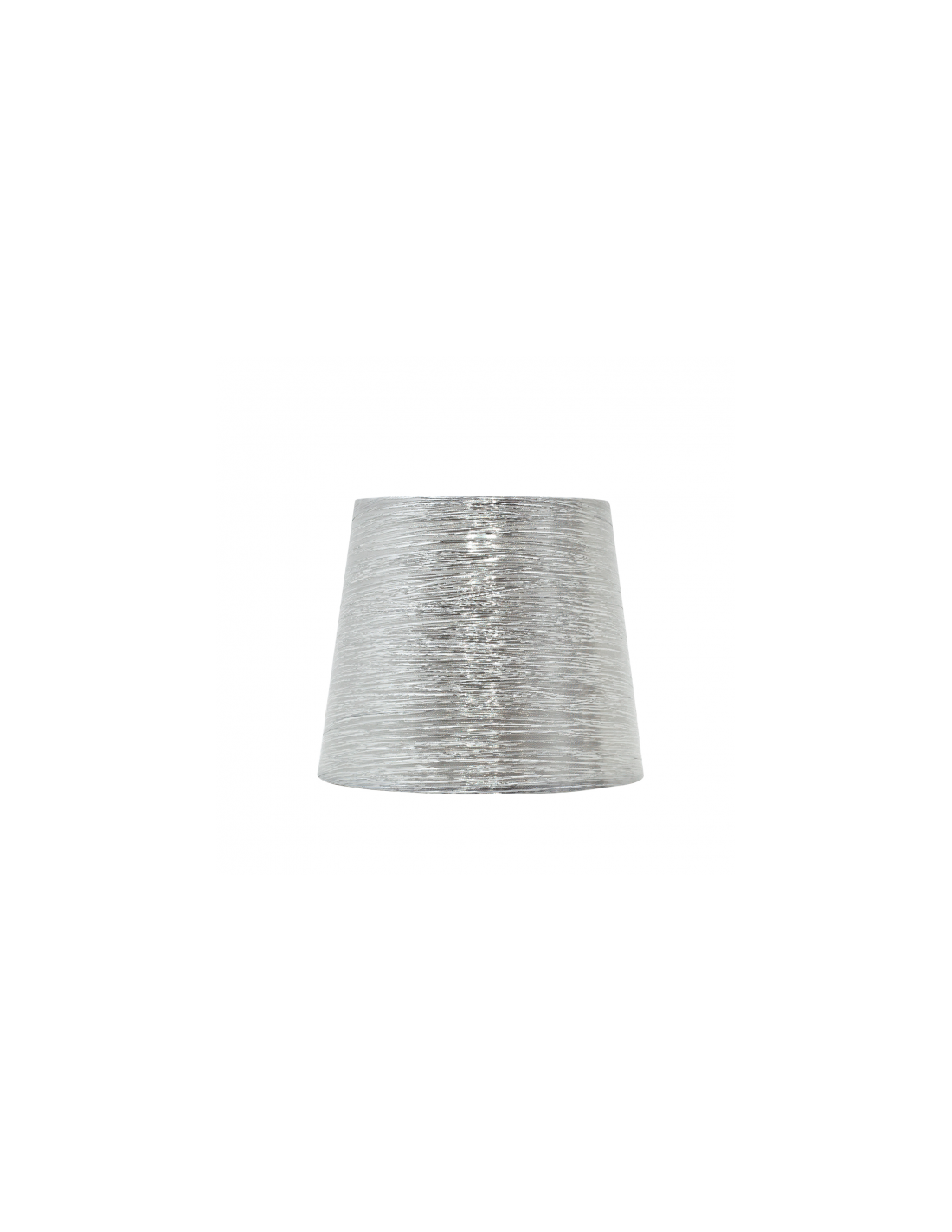 Pantalla serie Nova de color plata brillo. Se caracteriza por una decoración de hilos plateados que crean un juego de brillos y luces muy especial. Sus dimensiones son 20dx10dx16h. La puede encontrar también en los formatos de 45, 40, 35, 30, 25 y 15 cm y combinar con un armazón en color cromo o níquel.