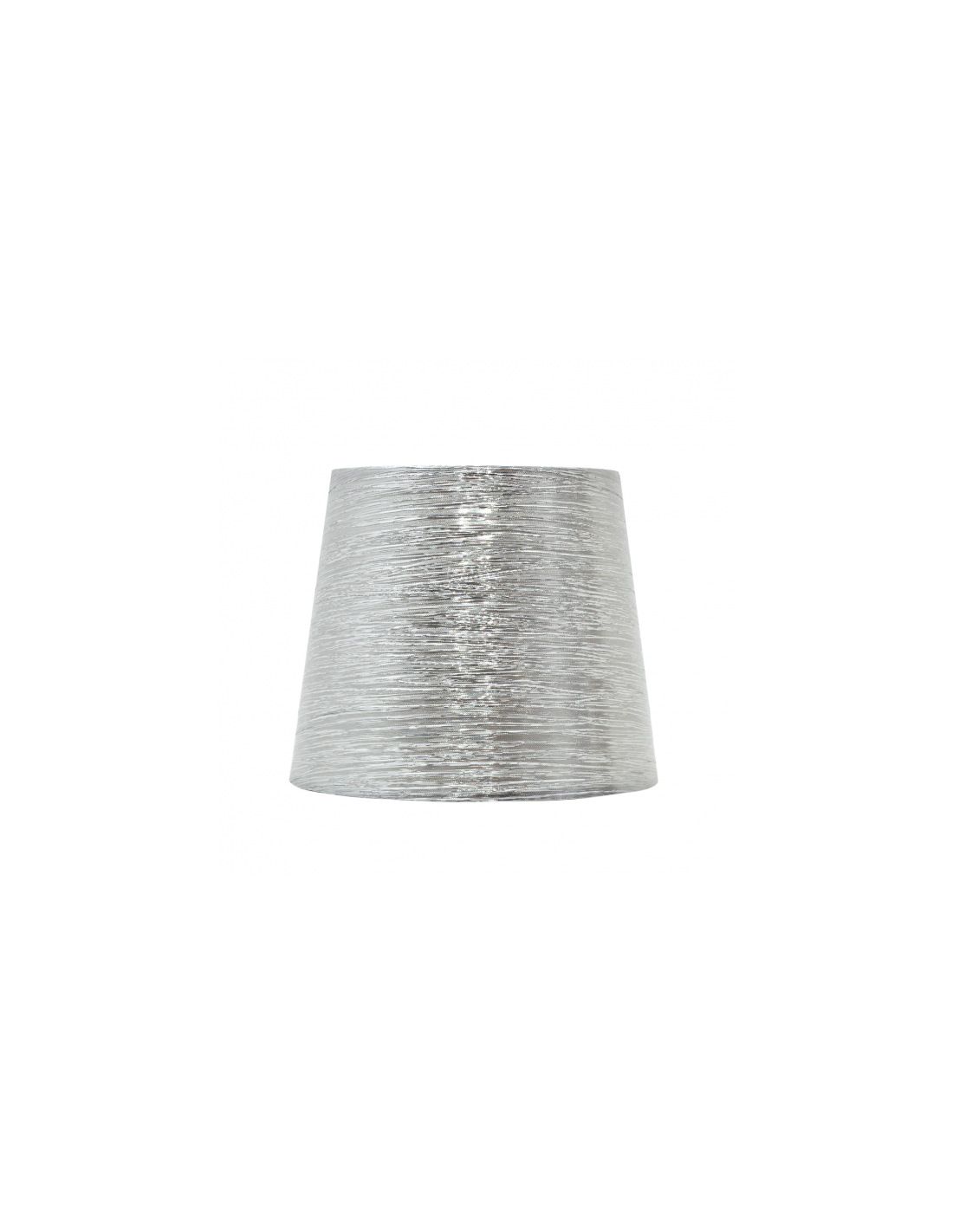 Pantalla serie Nova de color plata brillo. Se caracteriza por una decoración de hilos plateados que crean un juego de brillos y luces muy especial. Sus dimensiones son 30dx15dx20h. La puede encontrar también en los formatos de 45, 40, 35, 25, 20 y 15 cm y combinar con un armazón en color cromo o níquel.