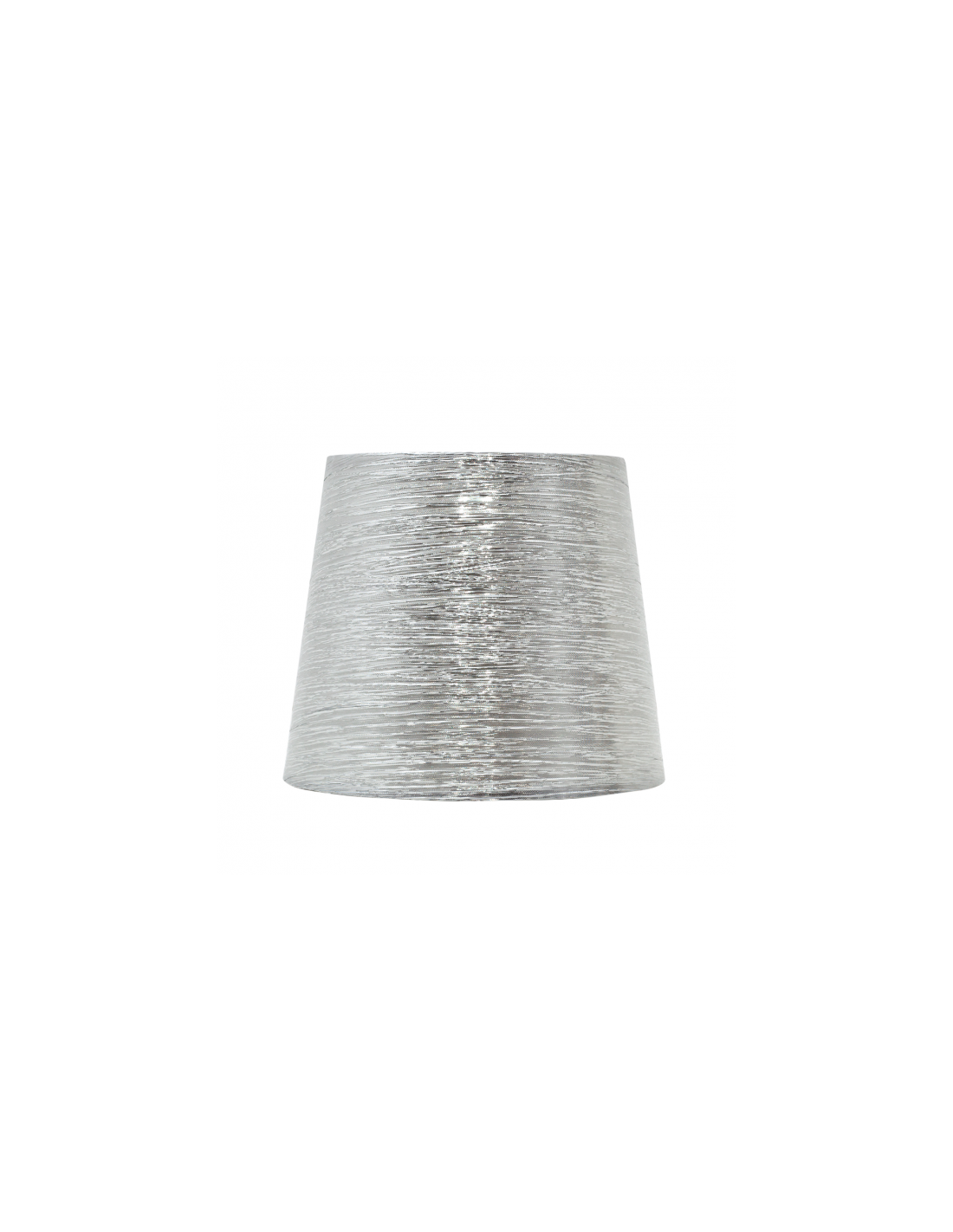 Pantalla serie Nova de color plata brillo. Se caracteriza por una decoración de hilos plateados que crean un juego de brillos y luces muy especial. Sus dimensiones son 35dx18dx23h. La puede encontrar también en los formatos de 45, 40, 30, 25, 20 y 15 cm y combinar con un armazón en color cromo o níquel.