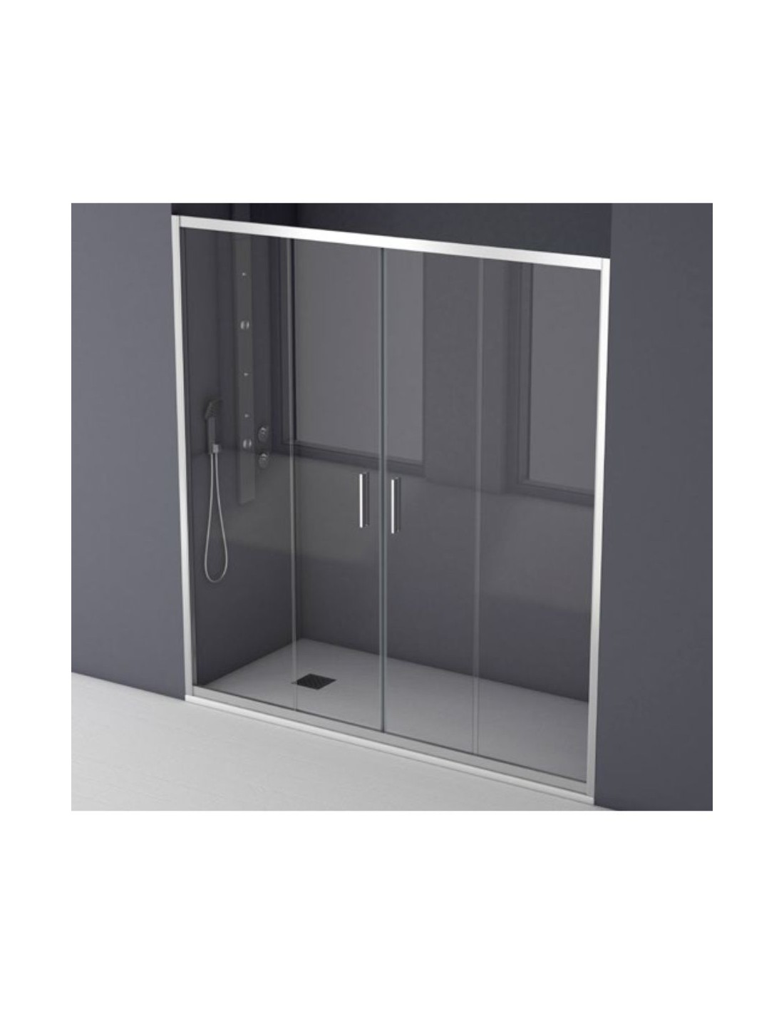 Robusta perfilería de aluminio que garantiza la estanqueidad y seguridad de la mampara.
