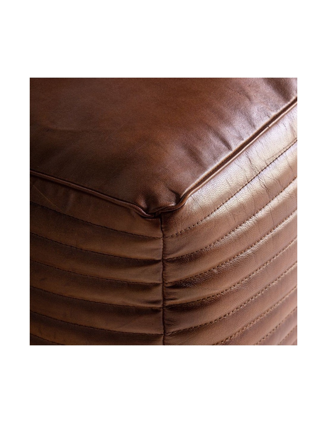Reposapiés Liverpool, En Color Marrón, De Estilo Vintage. Fabricado En Cuero, Combinado Con Hierro Y Espuma.