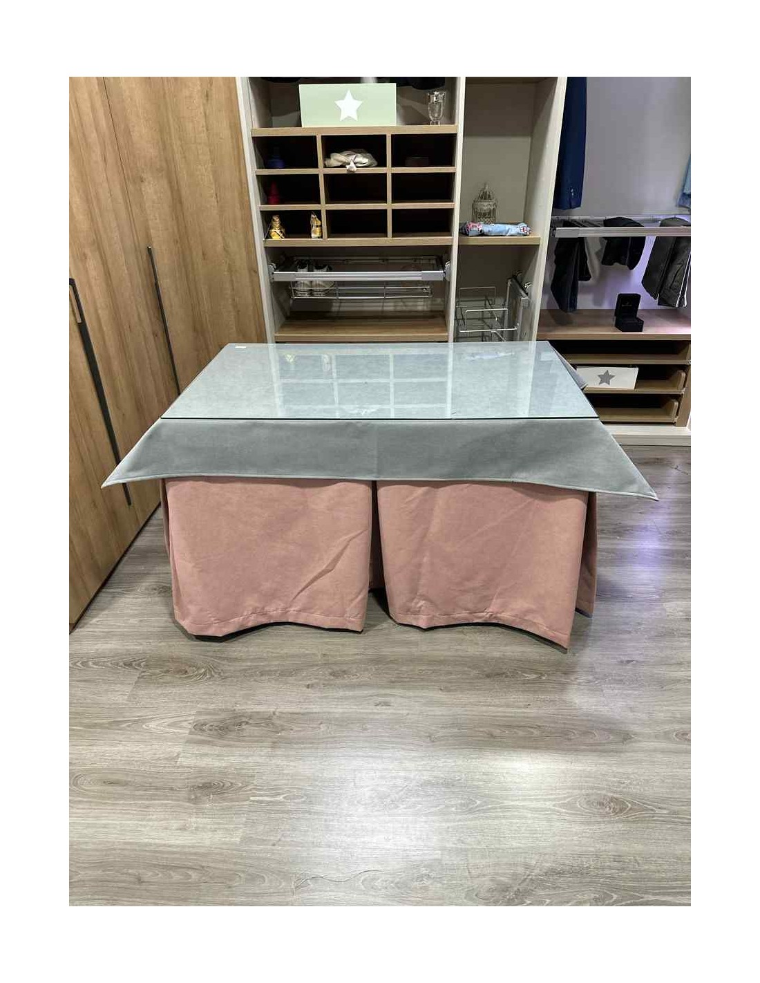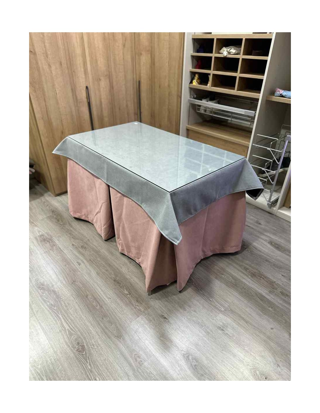 Ropa Antimanchas Aterciopelada Triplegrueso color Rosa con Tapete Liso Gris