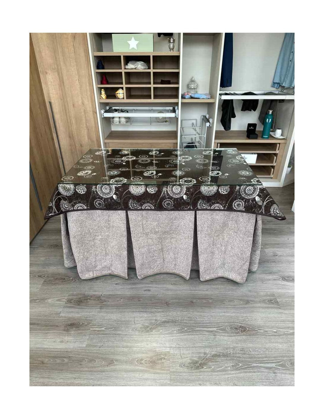 Tapete de diseño para crear ambientes en cada rincón de tu casa. La mesa de camilla es un producto que te permite decorar estancias y darles un ambiente acogedor a tu casa. Además evita las manchas cotidianas al comer ya que cubre la parte alta de la ropa de mesa camilla protegiendola de manchas inoportunas. Muy fácil y cómodo de lavar.