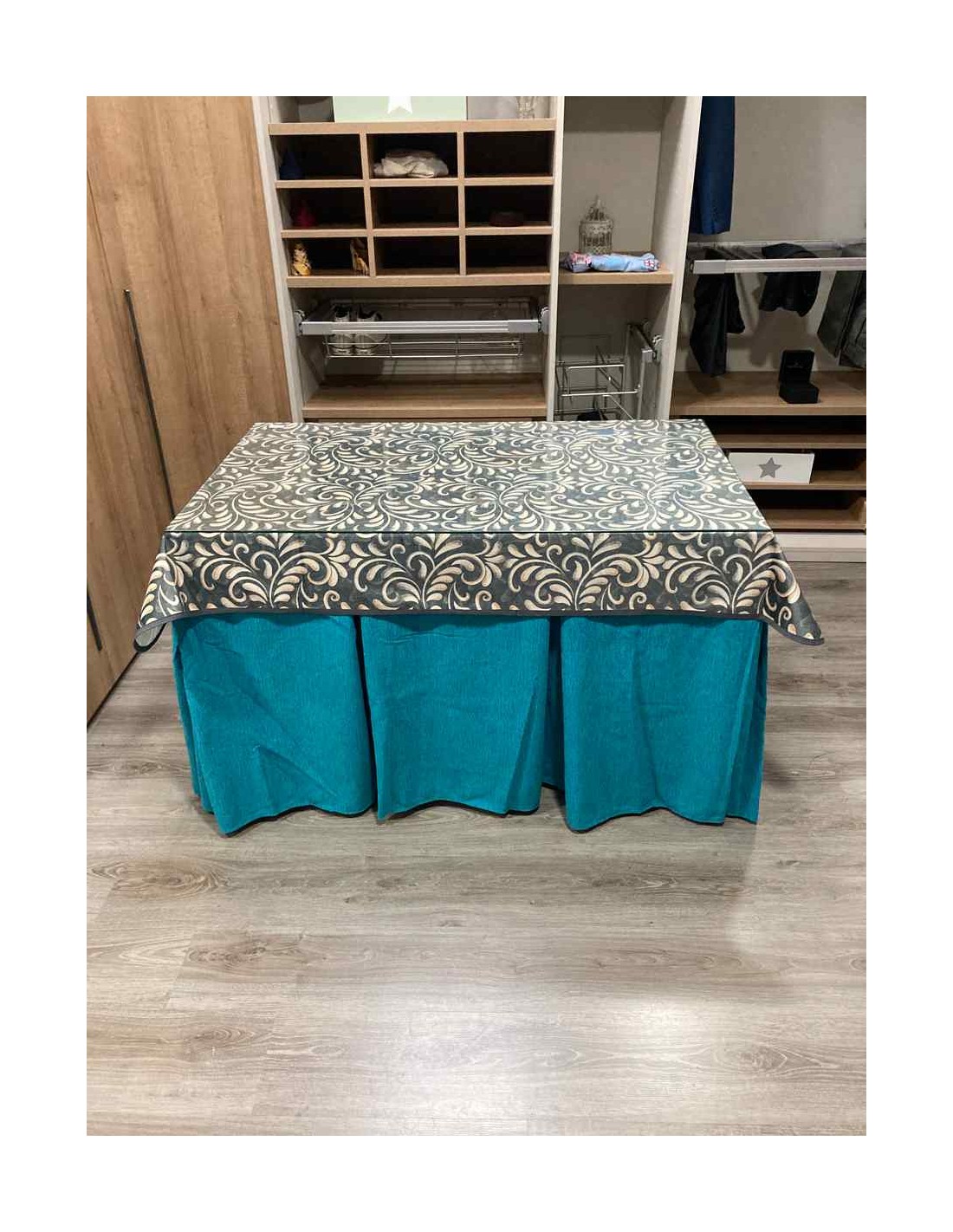 Confeccionada con 8 pliegues para mantener el calor de manera eficiente. Las tablas comunmente llamados pliegues, favorecen la retención de la temperatura impidiendo escapar el calor cuando nos sentamos en la mesa y nos cubrimos con ella. Gracias a nuestro diseño en los fuelles la falda de mesa camilla caerá cubriéndono los laterales e impidiendo que escape el calor.
