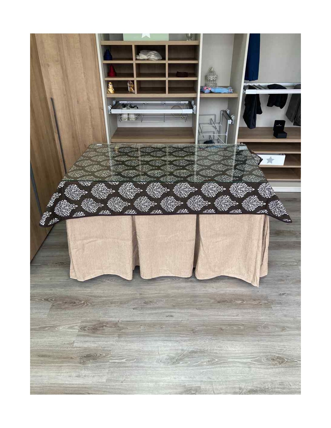 Confeccionada con 8 pliegues para mantener el calor de manera eficiente. Las tablas comunmente llamados pliegues, favorecen la retención de la temperatura impidiendo escapar el calor cuando nos sentamos en la mesa y nos cubrimos con ella. Gracias a nuestro diseño en los fuelles la falda de mesa camilla caerá cubriéndono los laterales e impidiendo que escape el calor.