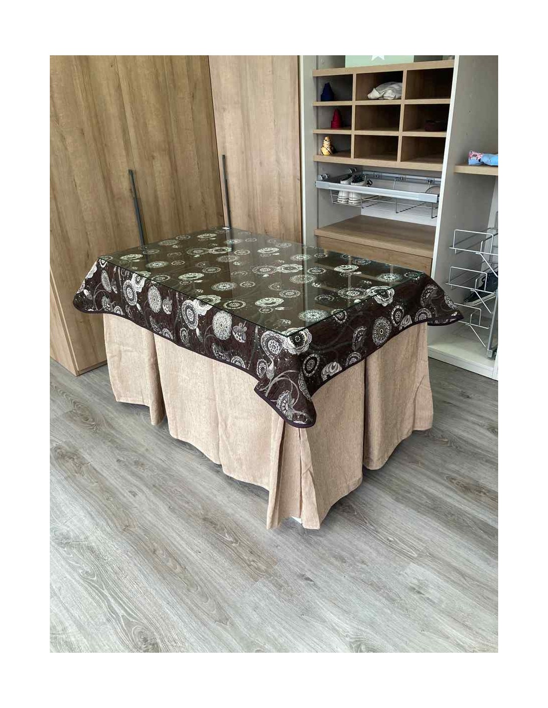 Disfruta la calidez de esta ropa de mesa camilla con tejido chenilla de 10 pliegues con tapete. Tacto suave y agradable, mantiene la temperatura facilitando el ahorro de consumo energético.