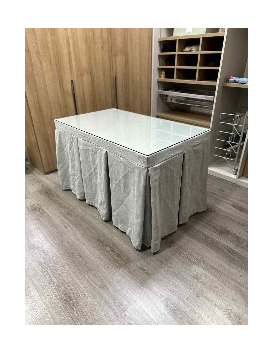 Confeccionada con 10 pliegues para mantener el calor de manera eficiente. Las tablas comunmente llamados pliegues, favorecen la retención de la temperatura impidiendo escapar el calor cuando nos sentamos en la mesa y nos cubrimos con ella. Gracias a nuestro diseño en los fuelles la falda de mesa camilla caerá cubriéndono los laterales e impidiendo que escape el calor.