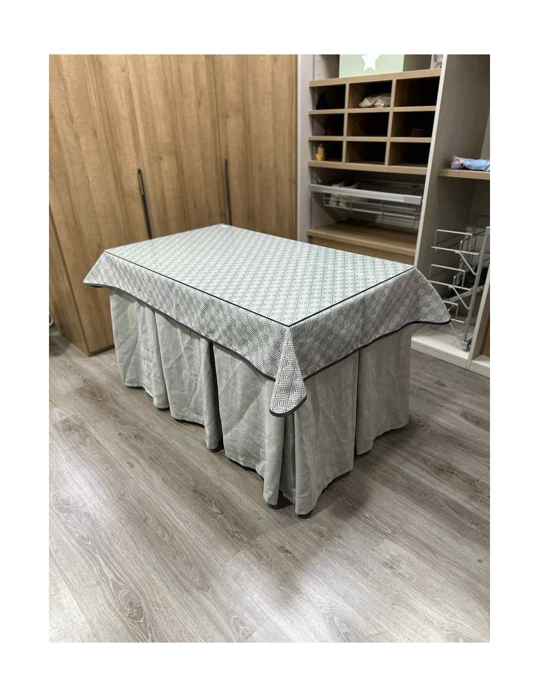 Ropa Chenilla 10 Pliegues color Gris Claro con Tapete Rombos