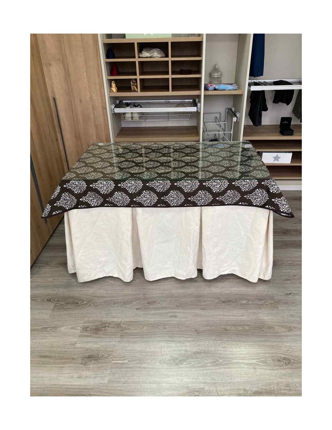 Confeccionada con 8 pliegues para mantener el calor de manera eficiente. Las tablas comunmente llamados pliegues, favorecen la retención de la temperatura impidiendo escapar el calor cuando nos sentamos en la mesa y nos cubrimos con ella. Gracias a nuestro diseño en los fuelles la falda de mesa camilla caerá cubriéndono los laterales e impidiendo que escape el calor.