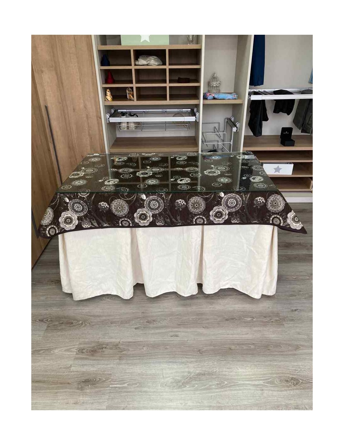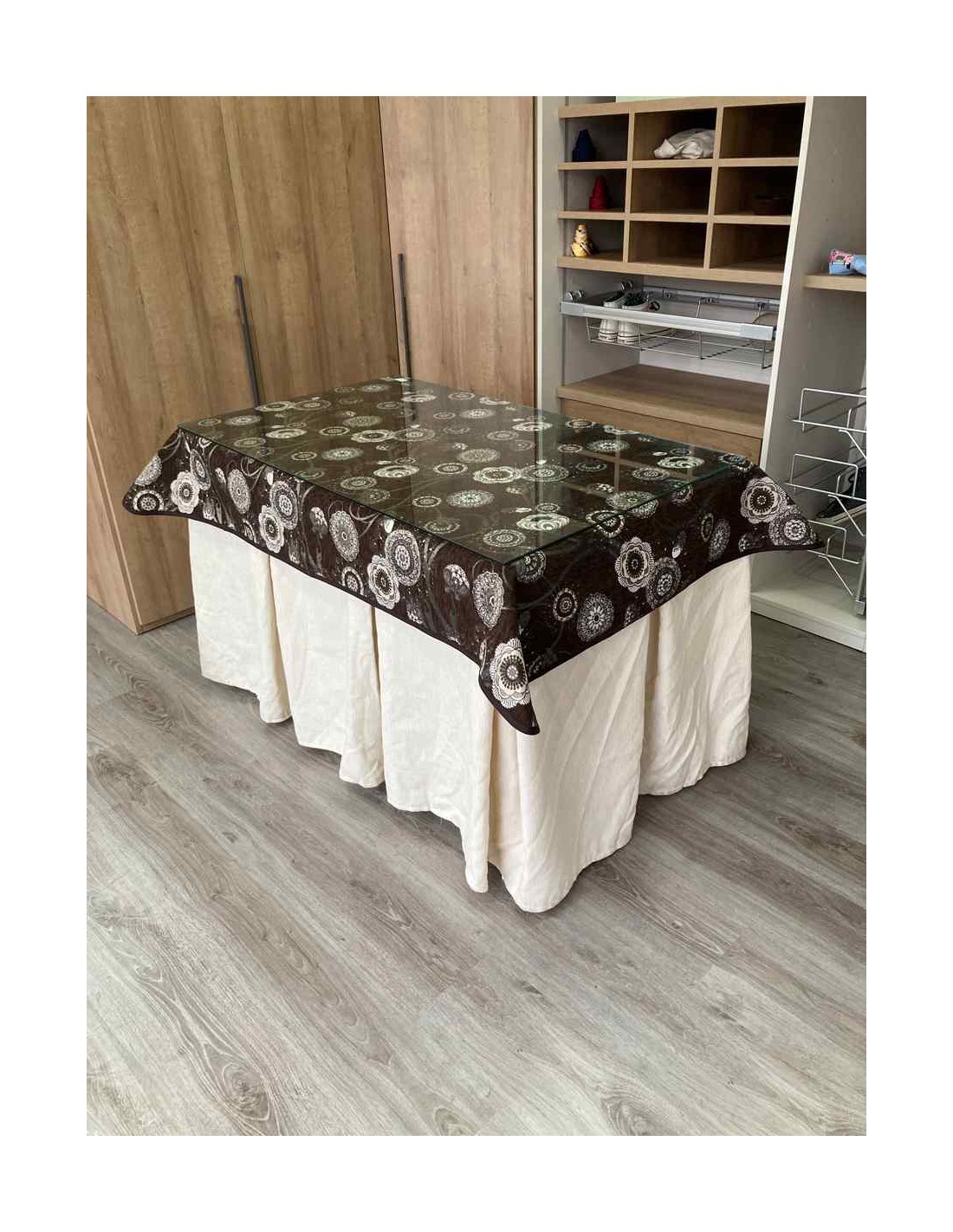 Confeccionada con 8 pliegues para mantener el calor de manera eficiente. Las tablas comunmente llamados pliegues, favorecen la retención de la temperatura impidiendo escapar el calor cuando nos sentamos en la mesa y nos cubrimos con ella. Gracias a nuestro diseño en los fuelles la falda de mesa camilla caerá cubriéndono los laterales e impidiendo que escape el calor.