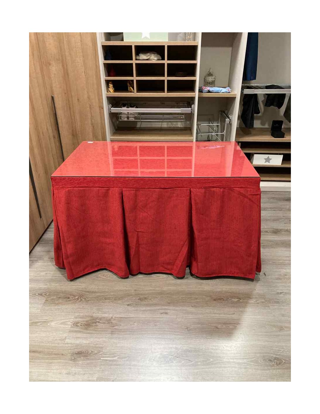 Confeccionada con 10 pliegues para mantener el calor de manera eficiente. Las tablas comunmente llamados pliegues, favorecen la retención de la temperatura impidiendo escapar el calor cuando nos sentamos en la mesa y nos cubrimos con ella. Gracias a nuestro diseño en los fuelles la falda de mesa camilla caerá cubriéndono los laterales e impidiendo que escape el calor.
