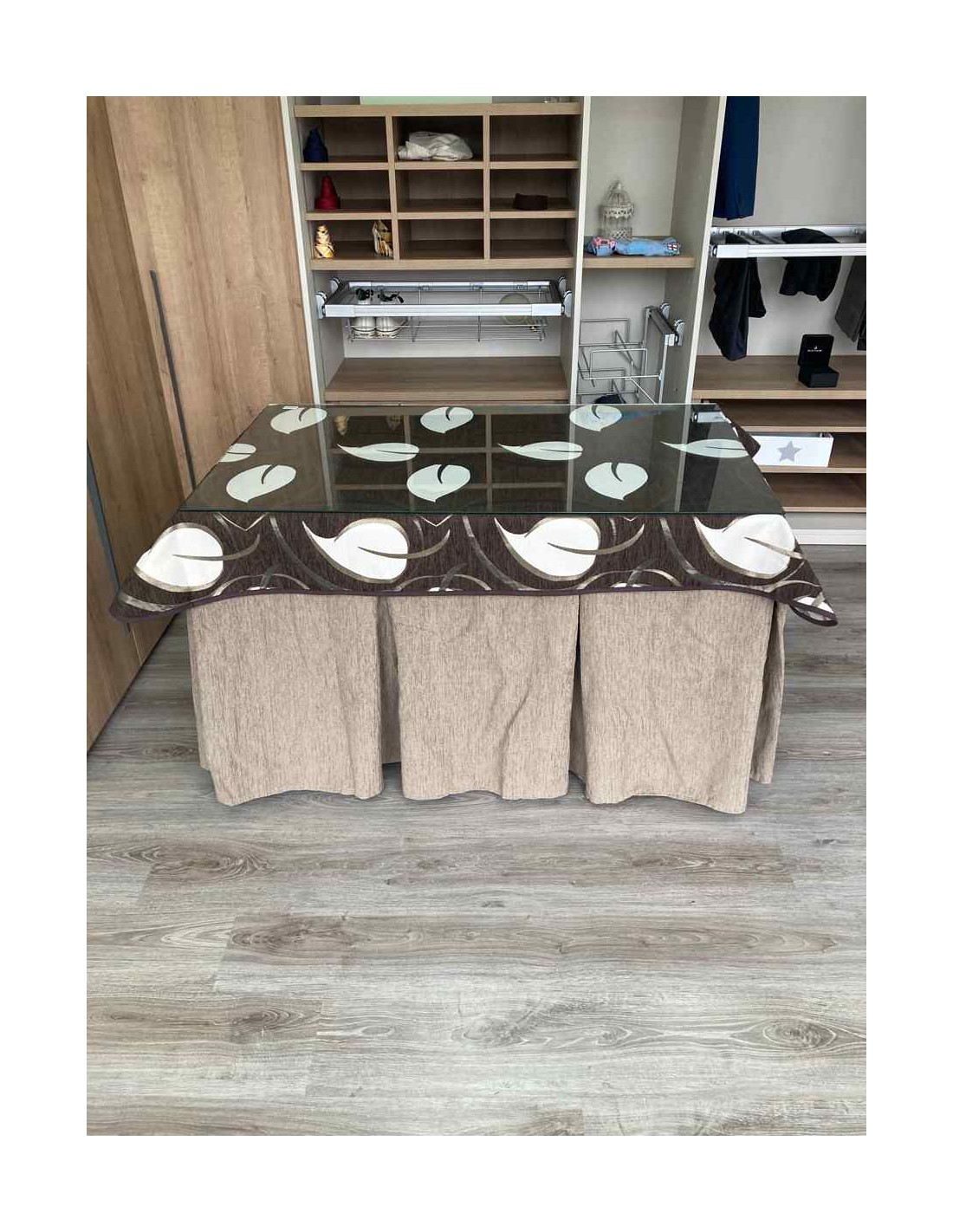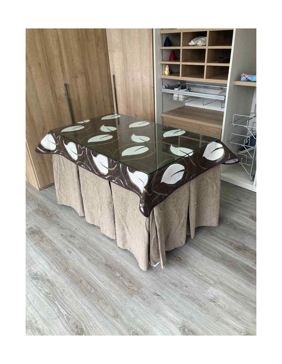Ropa Chenilla 10 Pliegues color Topo con Tapete Hojas