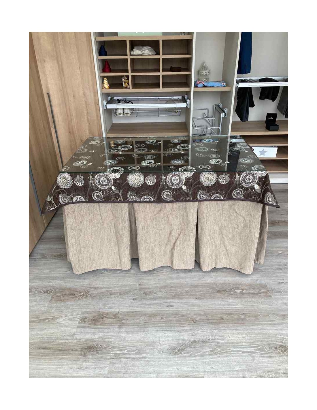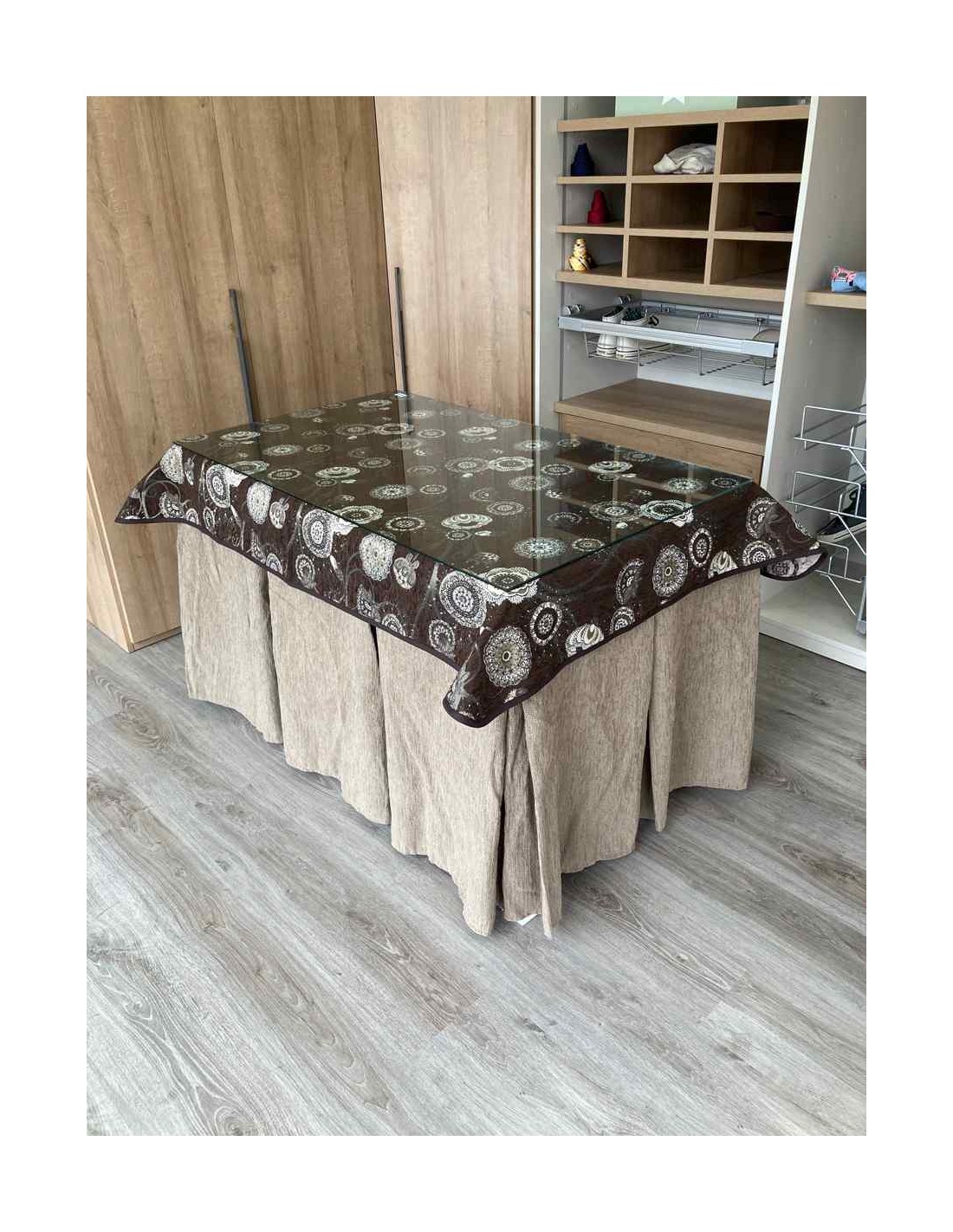 Confeccionada con 8 pliegues para mantener el calor de manera eficiente. Las tablas comunmente llamados pliegues, favorecen la retención de la temperatura impidiendo escapar el calor cuando nos sentamos en la mesa y nos cubrimos con ella. Gracias a nuestro diseño en los fuelles la falda de mesa camilla caerá cubriéndono los laterales e impidiendo que escape el calor.