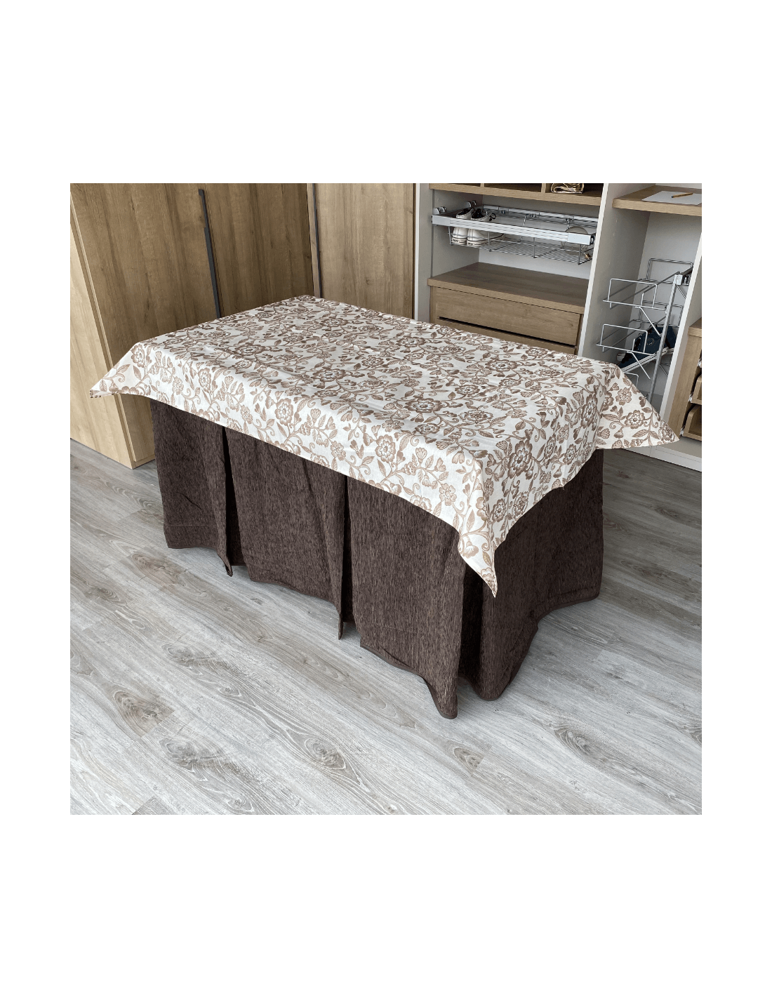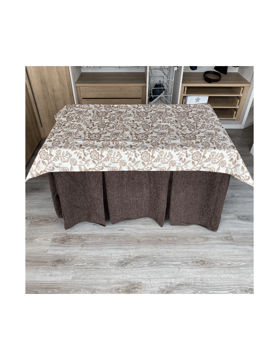 Ropa chenilla para mesa camilla acabada en 8 pliegues.
