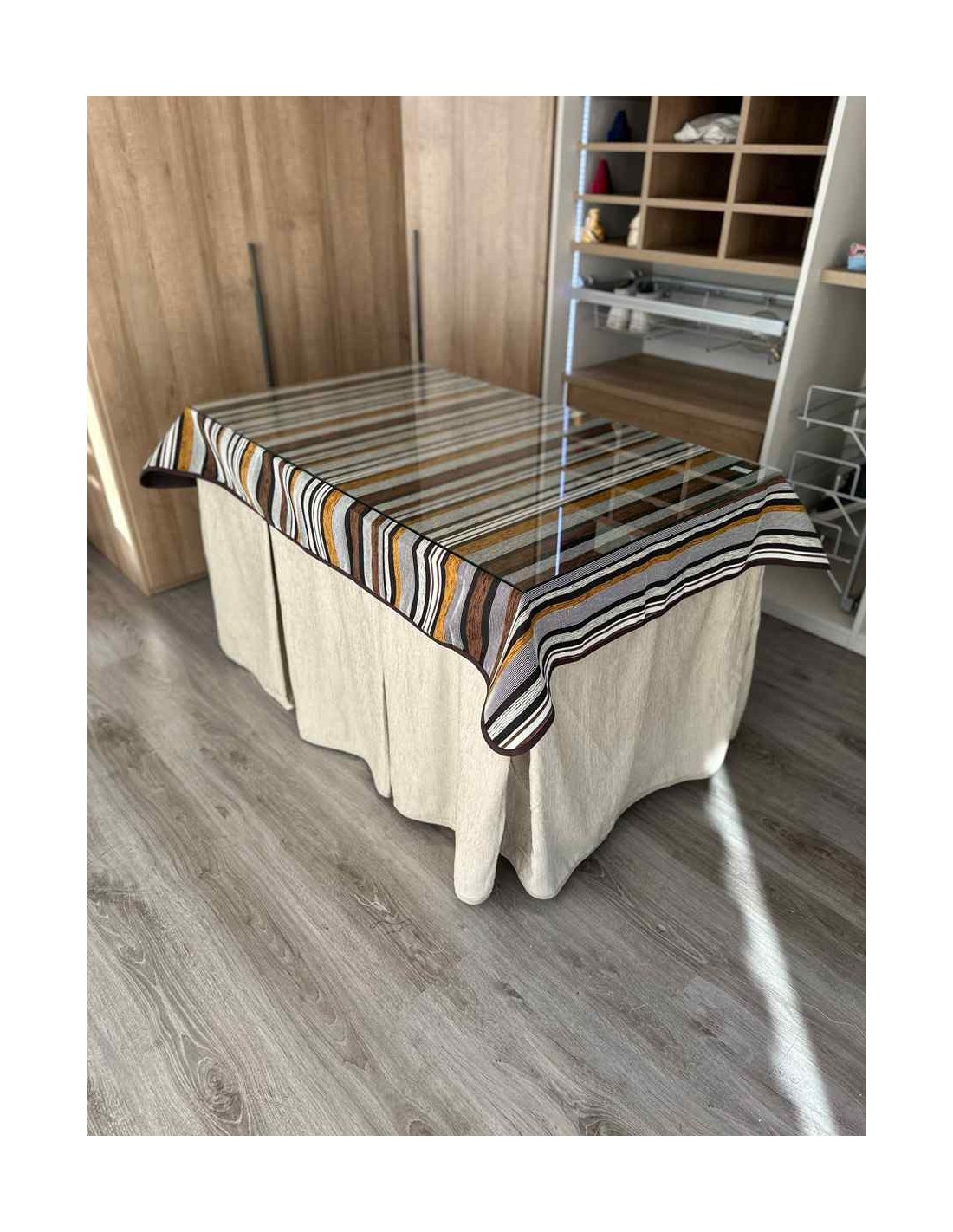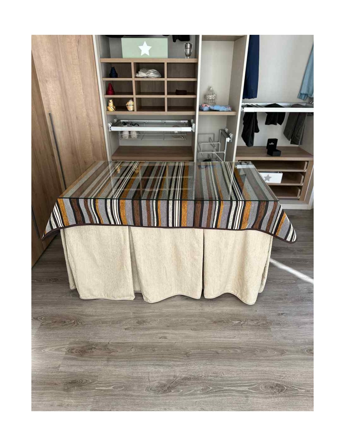 Confeccionada con 8 pliegues para mantener el calor de manera eficiente. Las tablas comunmente llamados pliegues, favorecen la retención de la temperatura impidiendo escapar el calor cuando nos sentamos en la mesa y nos cubrimos con ella. Gracias a nuestro diseño en los fuelles la falda de mesa camilla caerá cubriéndono los laterales e impidiendo que escape el calor.