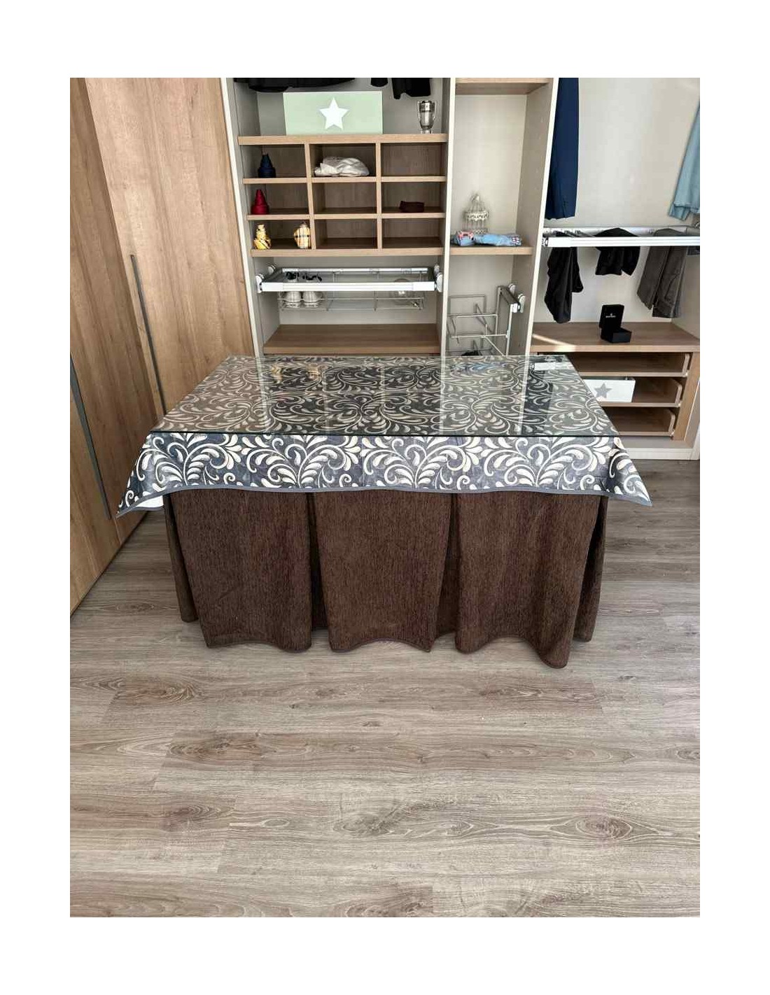 Confeccionada con 8 pliegues para mantener el calor de manera eficiente. Las tablas comunmente llamados pliegues, favorecen la retención de la temperatura impidiendo escapar el calor cuando nos sentamos en la mesa y nos cubrimos con ella. Gracias a nuestro diseño en los fuelles la falda de mesa camilla caerá cubriéndono los laterales e impidiendo que escape el calor.