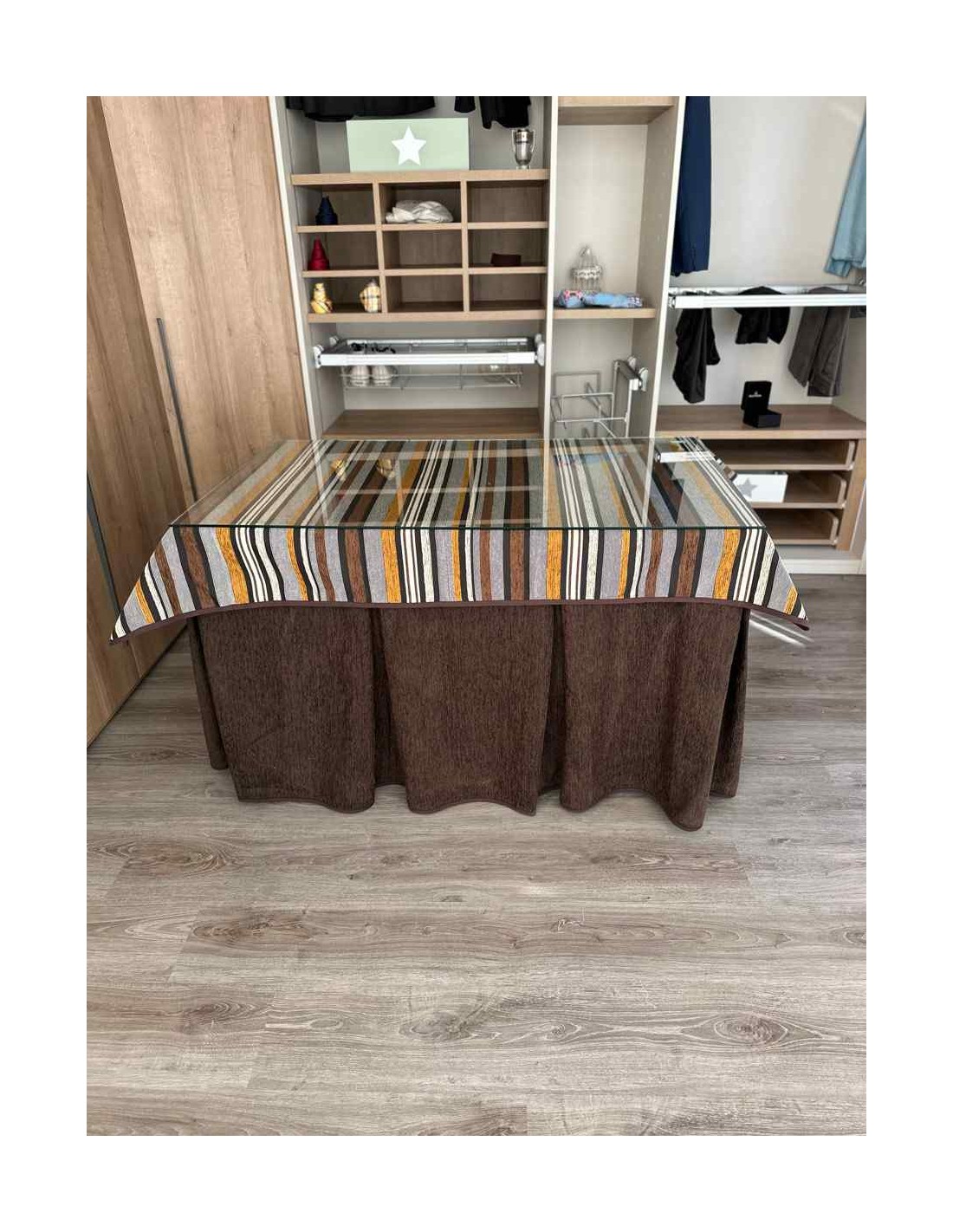 Confeccionada con 8 pliegues para mantener el calor de manera eficiente. Las tablas comunmente llamados pliegues, favorecen la retención de la temperatura impidiendo escapar el calor cuando nos sentamos en la mesa y nos cubrimos con ella. Gracias a nuestro diseño en los fuelles la falda de mesa camilla caerá cubriéndono los laterales e impidiendo que escape el calor.