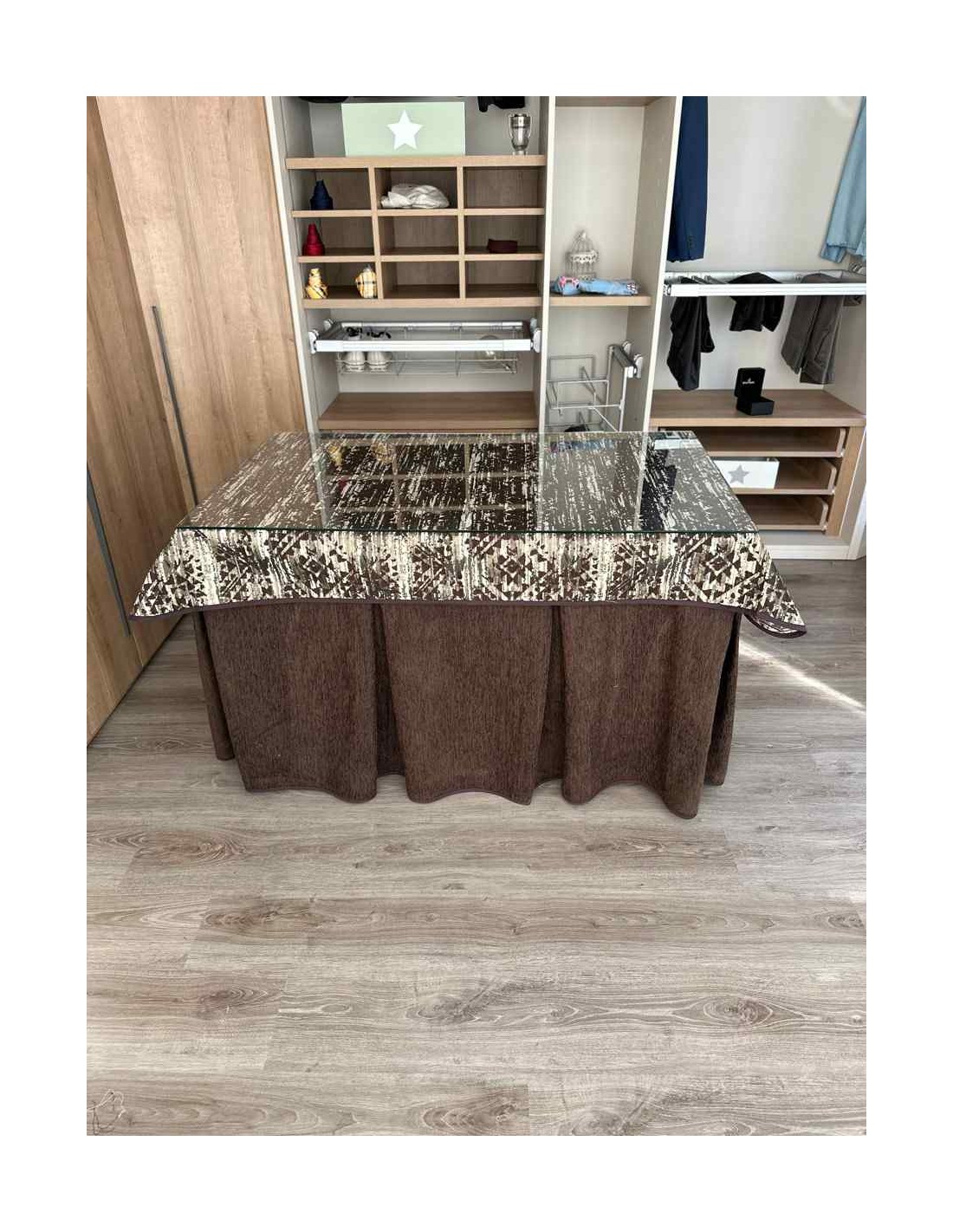 Disfruta la calidez de esta ropa de mesa camilla con tejido chenilla de 8 pliegues con tapete. Tacto suave y agradable, mantiene la temperatura facilitando el ahorro de consumo energético.