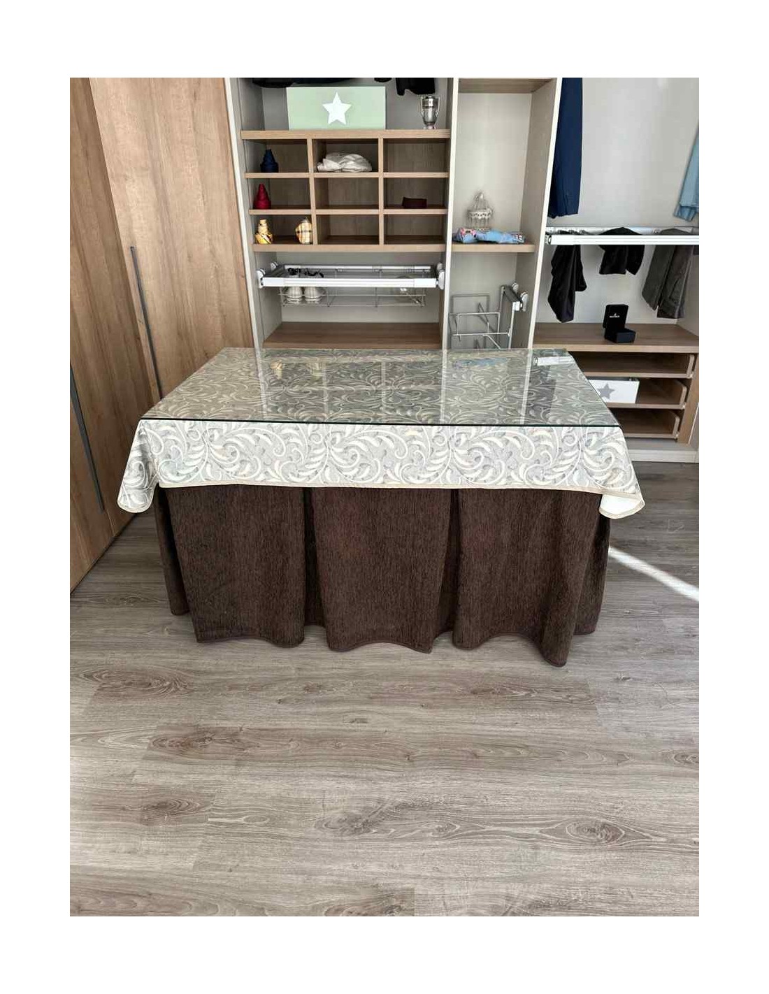 Confeccionada con 8 pliegues para mantener el calor de manera eficiente. Las tablas comunmente llamados pliegues, favorecen la retención de la temperatura impidiendo escapar el calor cuando nos sentamos en la mesa y nos cubrimos con ella. Gracias a nuestro diseño en los fuelles la falda de mesa camilla caerá cubriéndono los laterales e impidiendo que escape el calor.