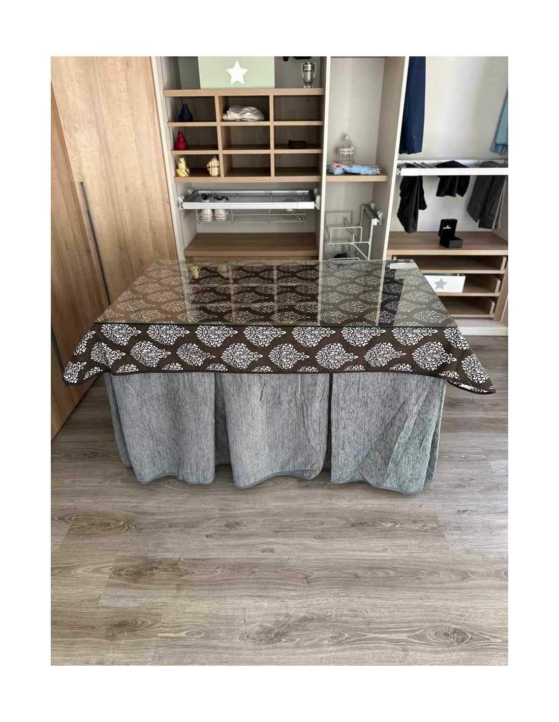 Confeccionada con 8 pliegues para mantener el calor de manera eficiente. Las tablas comunmente llamados pliegues, favorecen la retención de la temperatura impidiendo escapar el calor cuando nos sentamos en la mesa y nos cubrimos con ella. Gracias a nuestro diseño en los fuelles la falda de mesa camilla caerá cubriéndono los laterales e impidiendo que escape el calor.