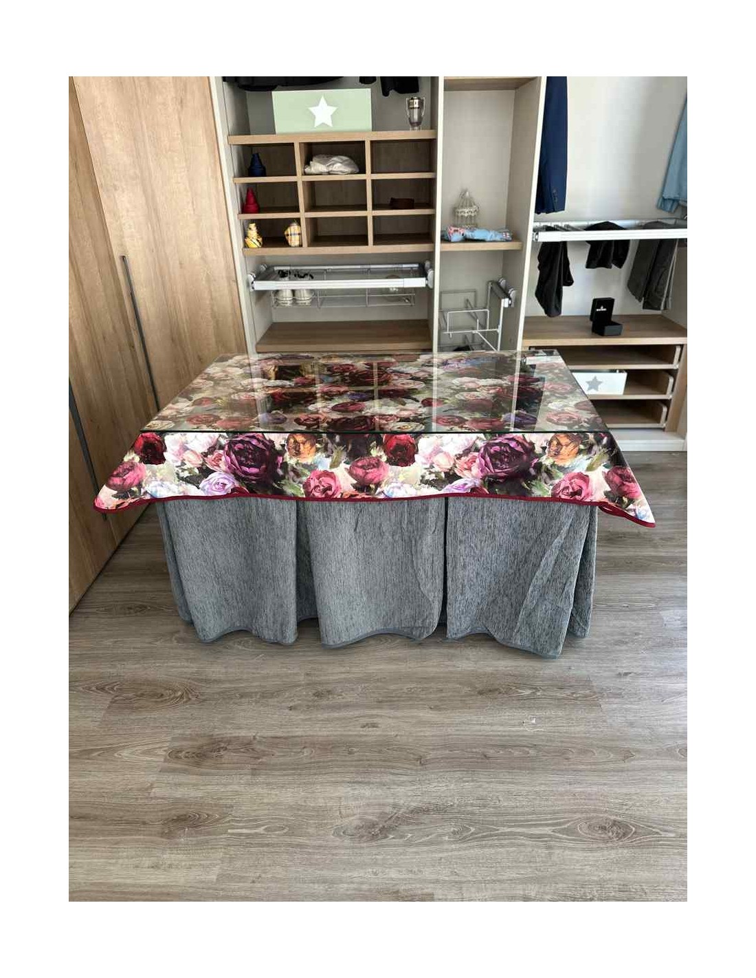 Disfruta la calidez de esta ropa de mesa camilla con tejido chenilla de 8 pliegues con tapete. Tacto suave y agradable, mantiene la temperatura facilitando el ahorro de consumo energético.