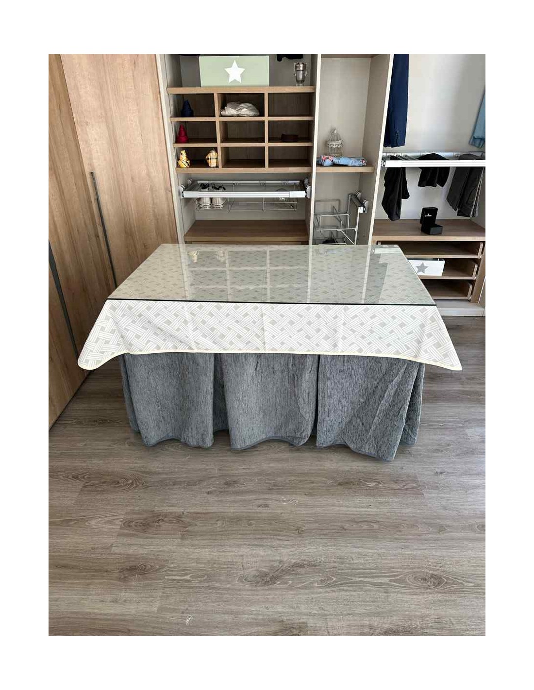 Confeccionada con 8 pliegues para mantener el calor de manera eficiente. Las tablas comunmente llamados pliegues, favorecen la retención de la temperatura impidiendo escapar el calor cuando nos sentamos en la mesa y nos cubrimos con ella. Gracias a nuestro diseño en los fuelles la falda de mesa camilla caerá cubriéndono los laterales e impidiendo que escape el calor.