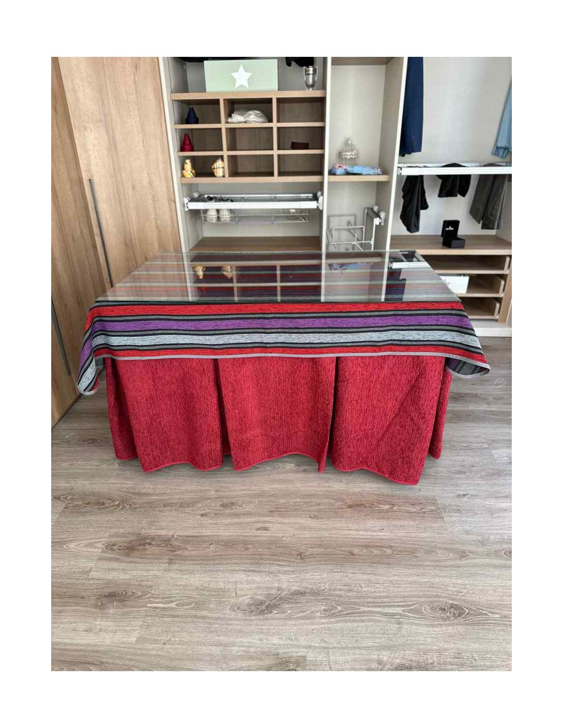 Ropa Chenilla 8 Pliegues color Rojo con Tapete Franjas