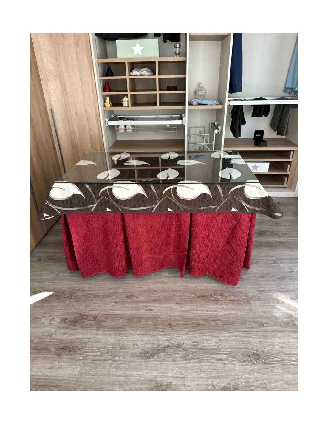 Disfruta la calidez de esta ropa de mesa camilla con tejido chenilla de 8 pliegues con tapete. Tacto suave y agradable, mantiene la temperatura facilitando el ahorro de consumo energético.