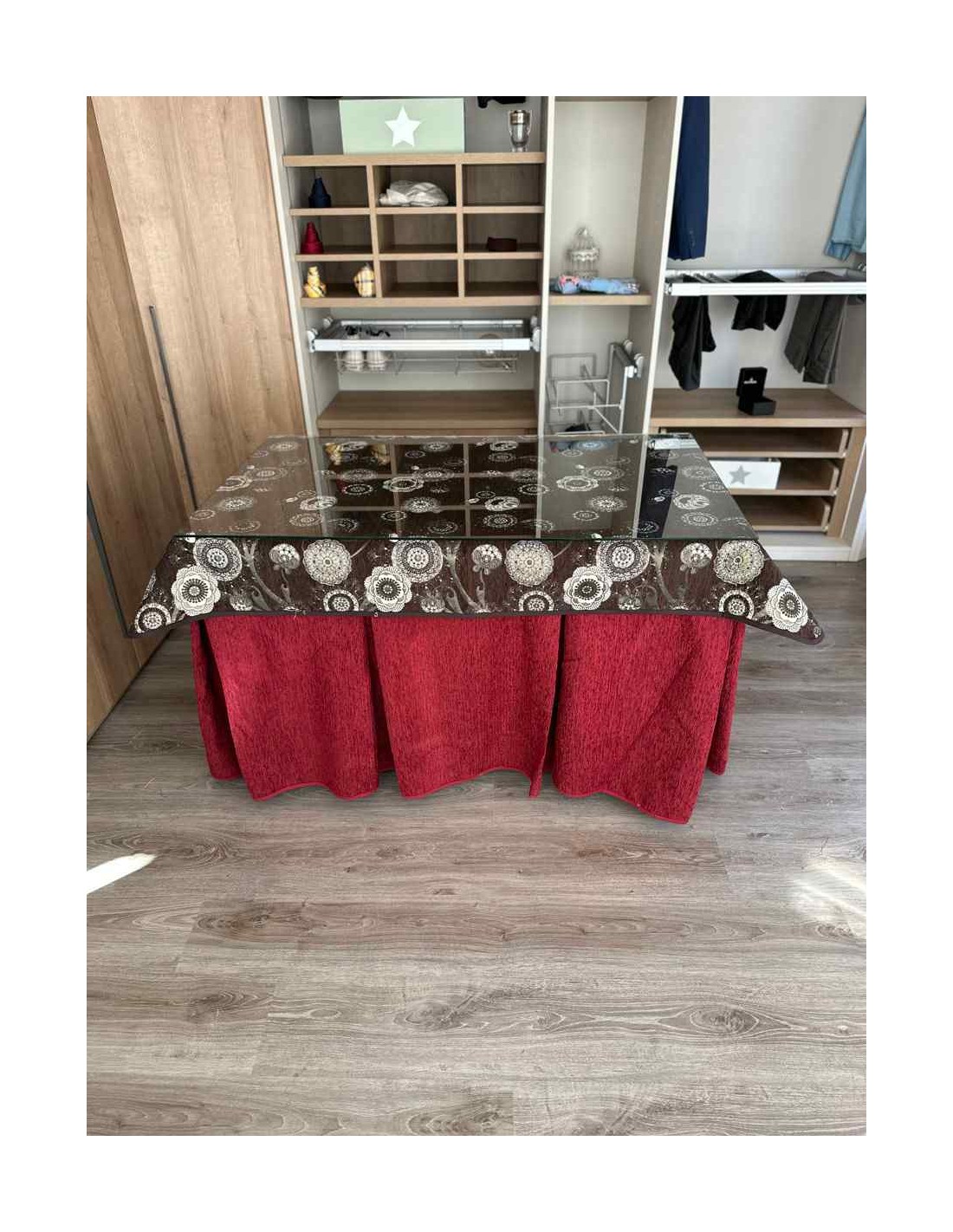Disfruta la calidez de esta ropa de mesa camilla con tejido chenilla de 8 pliegues con tapete. Tacto suave y agradable, mantiene la temperatura facilitando el ahorro de consumo energético.