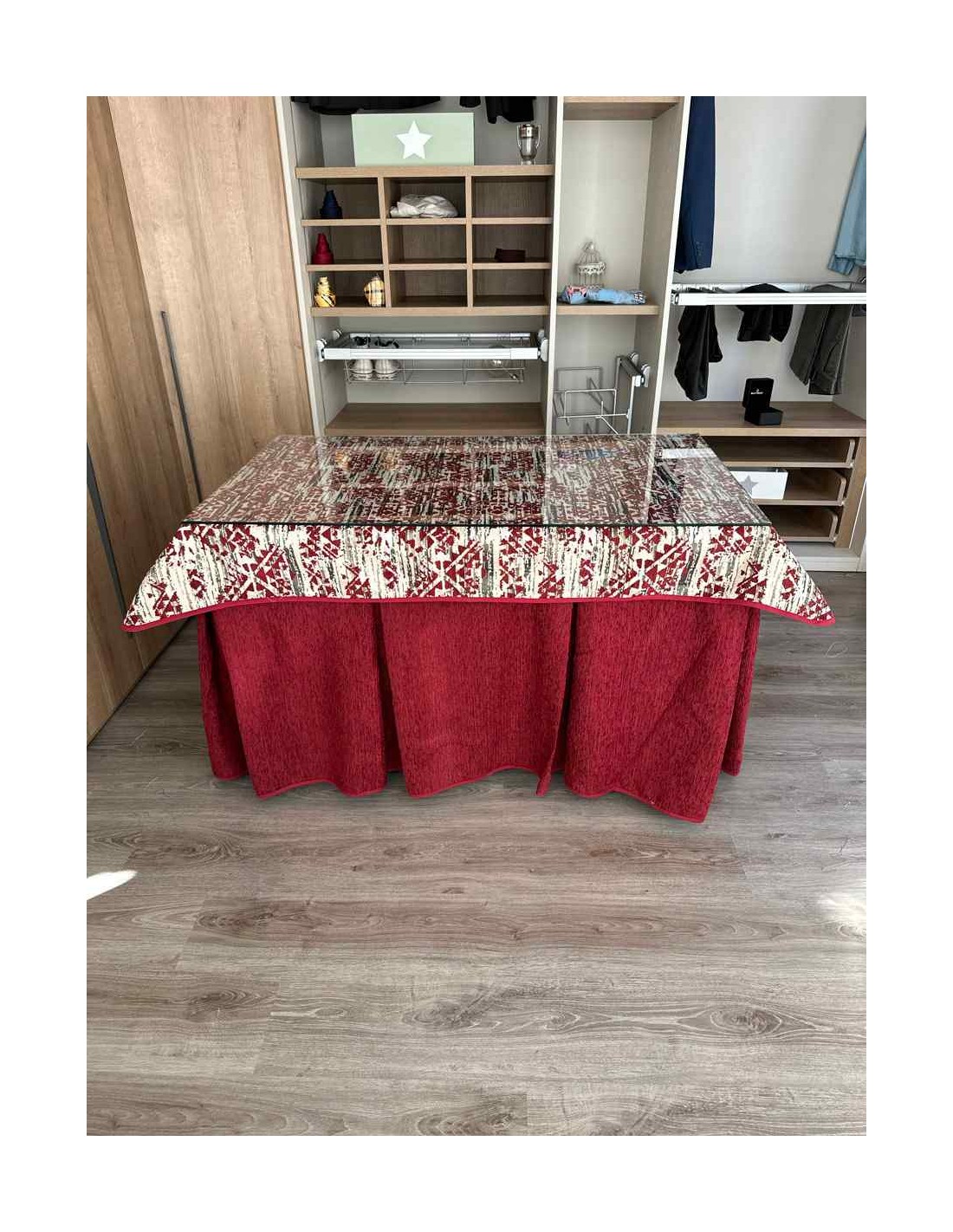 Disfruta la calidez de esta ropa de mesa camilla con tejido chenilla de 8 pliegues con tapete. Tacto suave y agradable, mantiene la temperatura facilitando el ahorro de consumo energético.