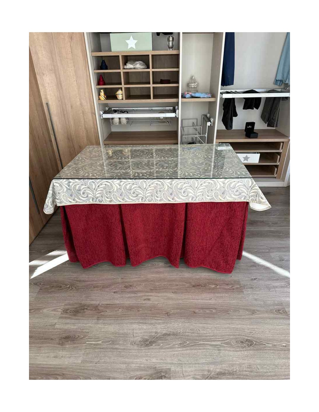Disfruta la calidez de esta ropa de mesa camilla con tejido chenilla de 8 pliegues con tapete. Tacto suave y agradable, mantiene la temperatura facilitando el ahorro de consumo energético.