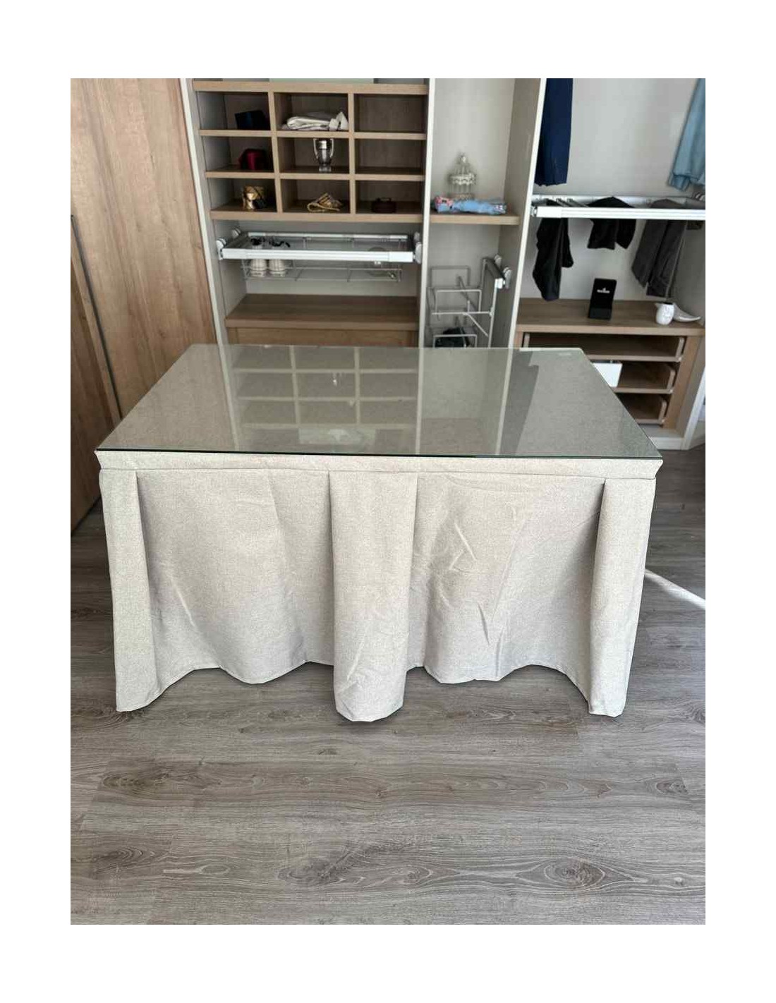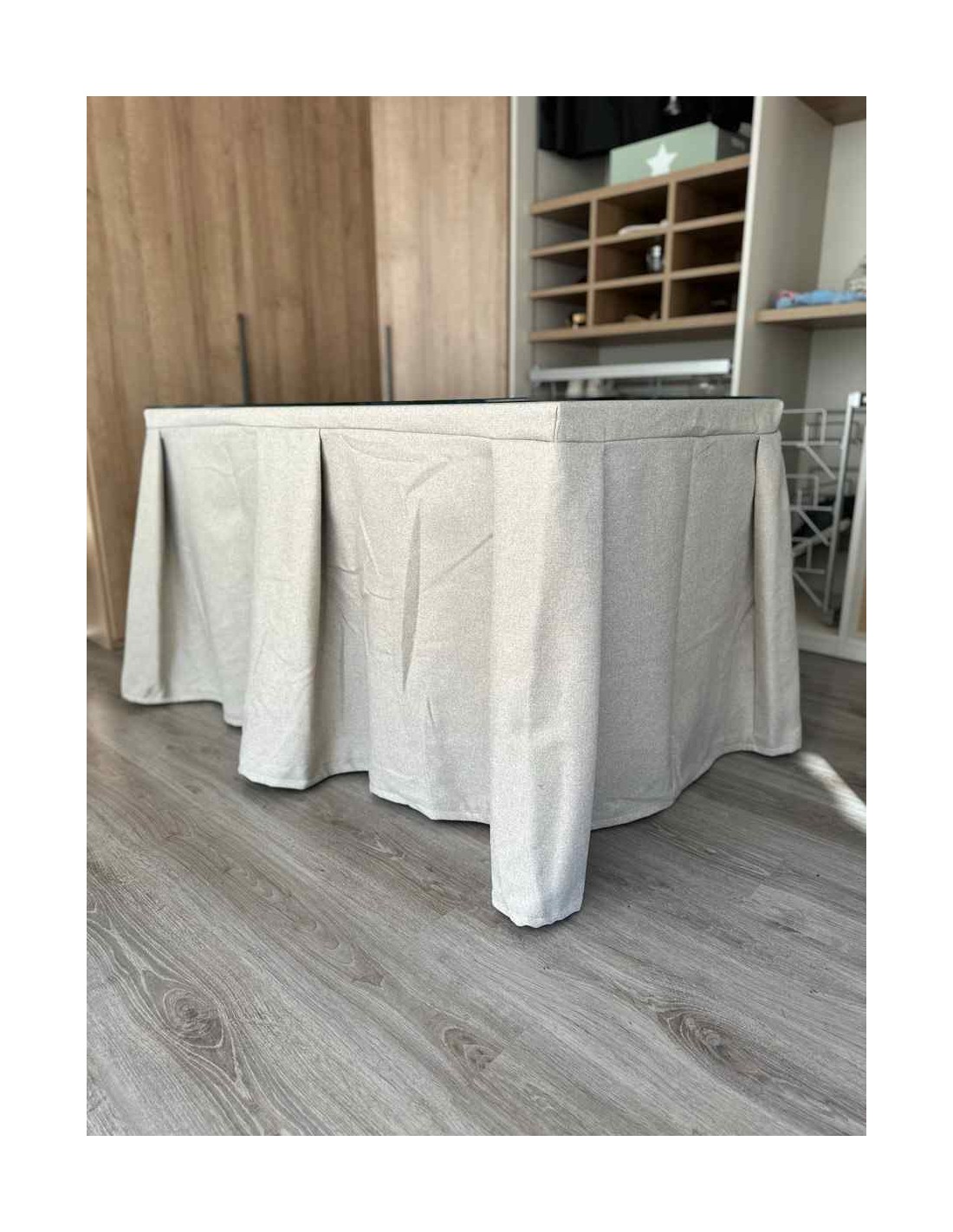 Vista su mesa de camilla con esta ropa de gran calidad y diseño italiano. Su tejido antimanchas le dará tranquilidad en el caso de que tenga pequeños o mascotas en casa. Este tipo de enaguas repele todo tipo de líquidos y evita, de esta manera, que la mancha llegue a quedarse impregnada en el tejido.
