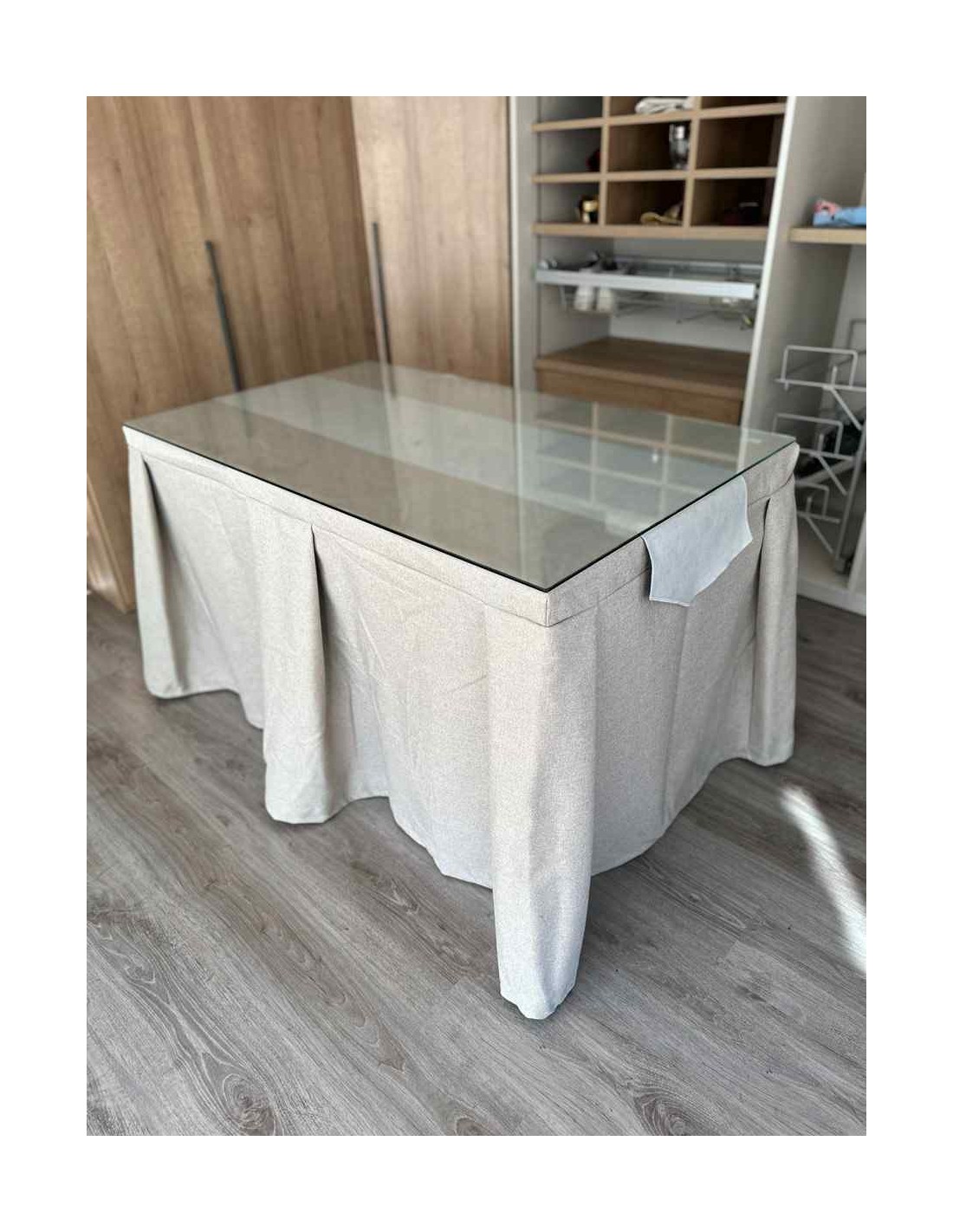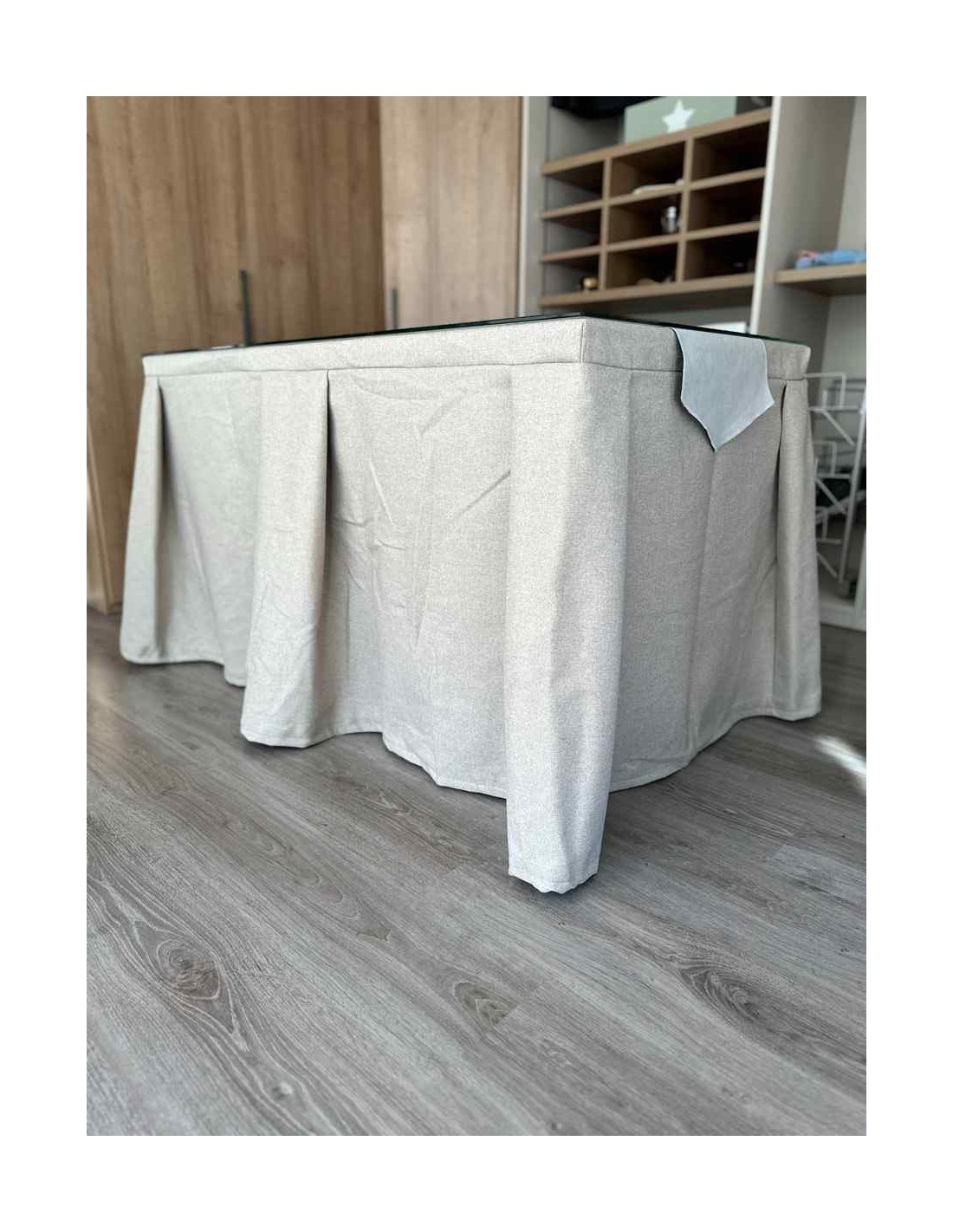 Vista su mesa de camilla con esta ropa de gran calidad y diseño italiano. Su tejido antimanchas le dará tranquilidad en el caso de que tenga pequeños o mascotas en casa. Este tipo de enaguas repele todo tipo de líquidos y evita, de esta manera, que la mancha llegue a quedarse impregnada en el tejido.