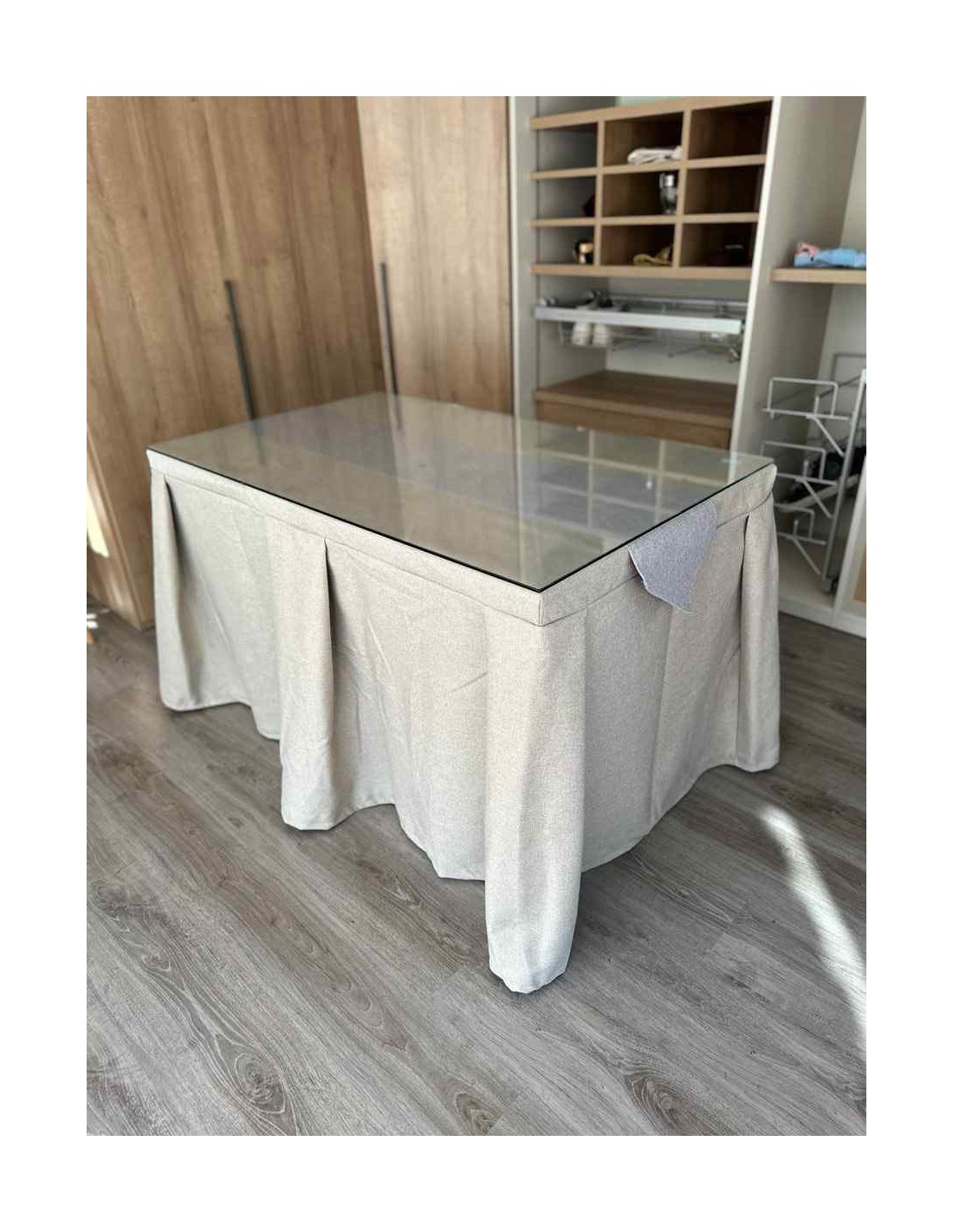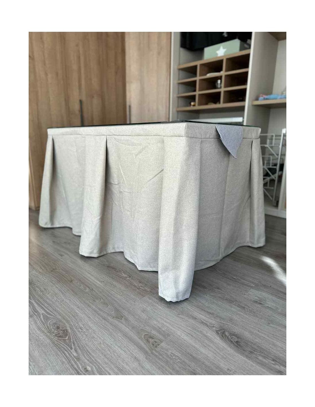 Vista su mesa de camilla con esta ropa de gran calidad y diseño italiano. Su tejido antimanchas le dará tranquilidad en el caso de que tenga pequeños o mascotas en casa. Este tipo de enaguas repele todo tipo de líquidos y evita, de esta manera, que la mancha llegue a quedarse impregnada en el tejido.