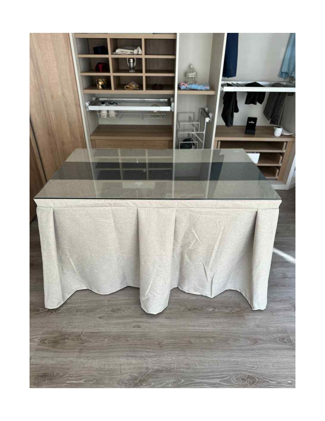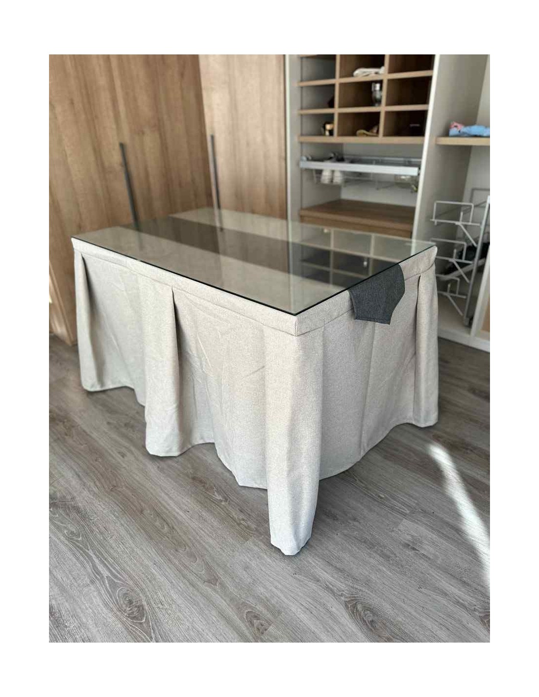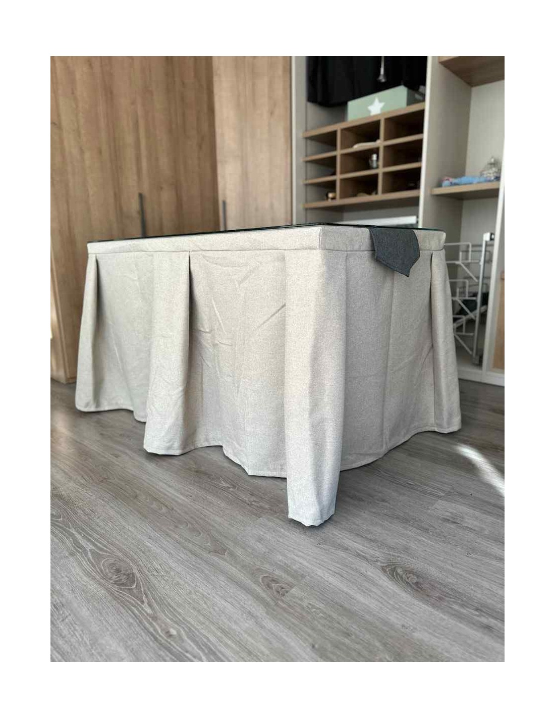 Vista su mesa de camilla con esta ropa de gran calidad y diseño italiano. Su tejido antimanchas le dará tranquilidad en el caso de que tenga pequeños o mascotas en casa. Este tipo de enaguas repele todo tipo de líquidos y evita, de esta manera, que la mancha llegue a quedarse impregnada en el tejido.