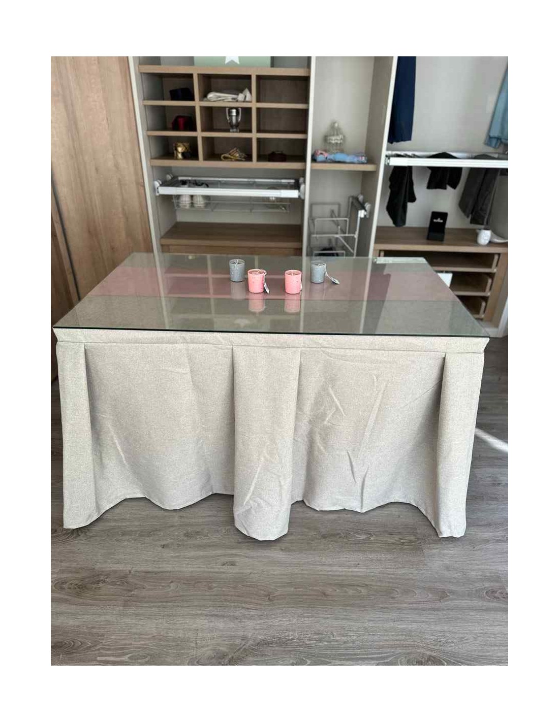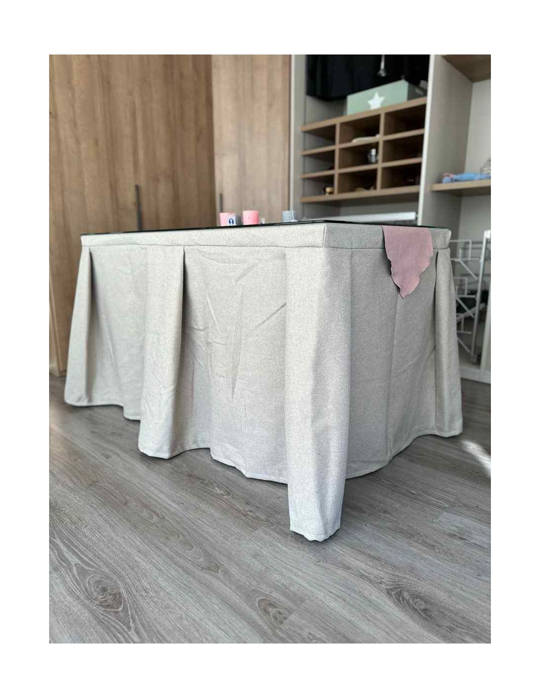 Vista su mesa de camilla con esta ropa de gran calidad y diseño italiano. Su tejido antimanchas le dará tranquilidad en el caso de que tenga pequeños o mascotas en casa. Este tipo de enaguas repele todo tipo de líquidos y evita, de esta manera, que la mancha llegue a quedarse impregnada en el tejido.
