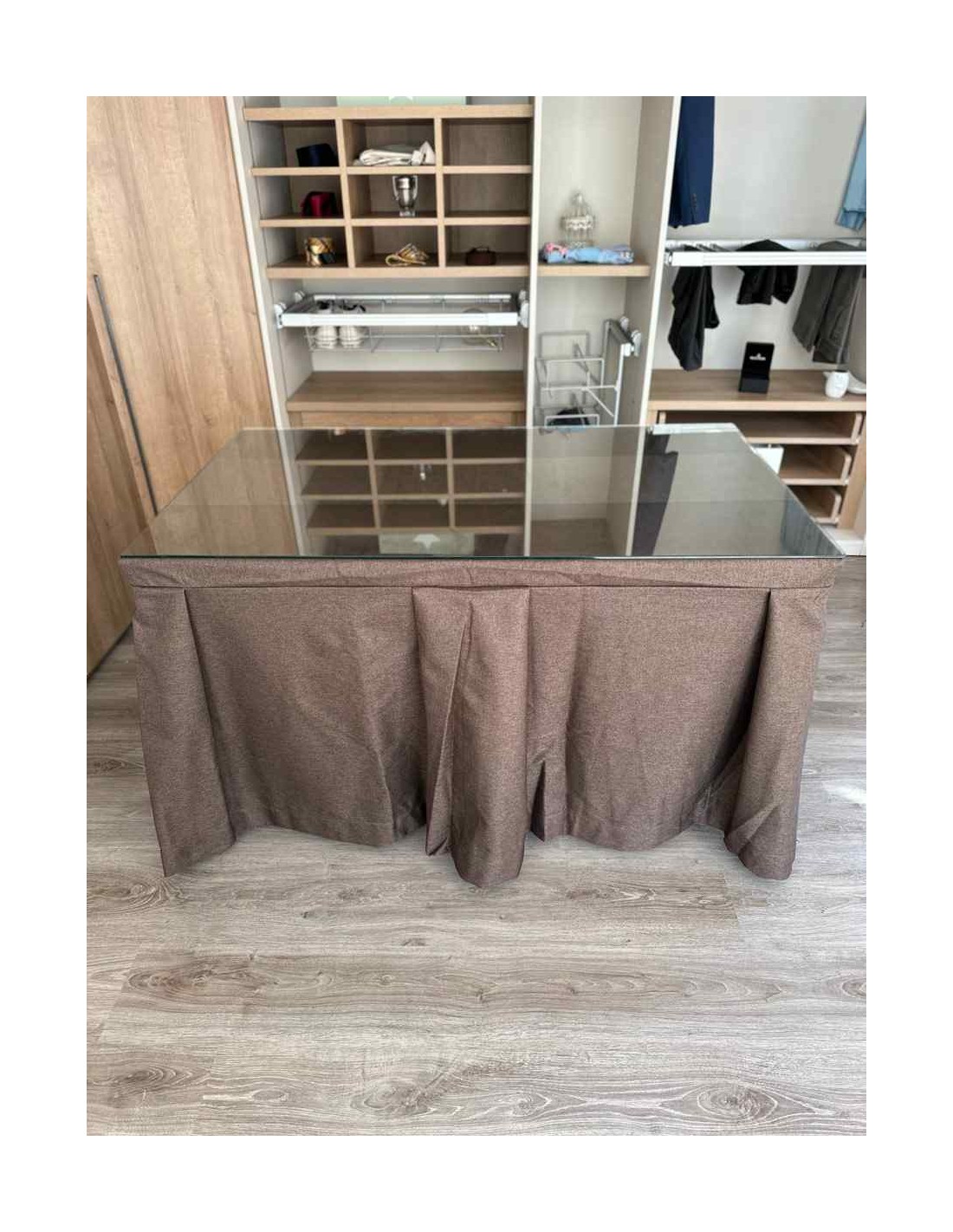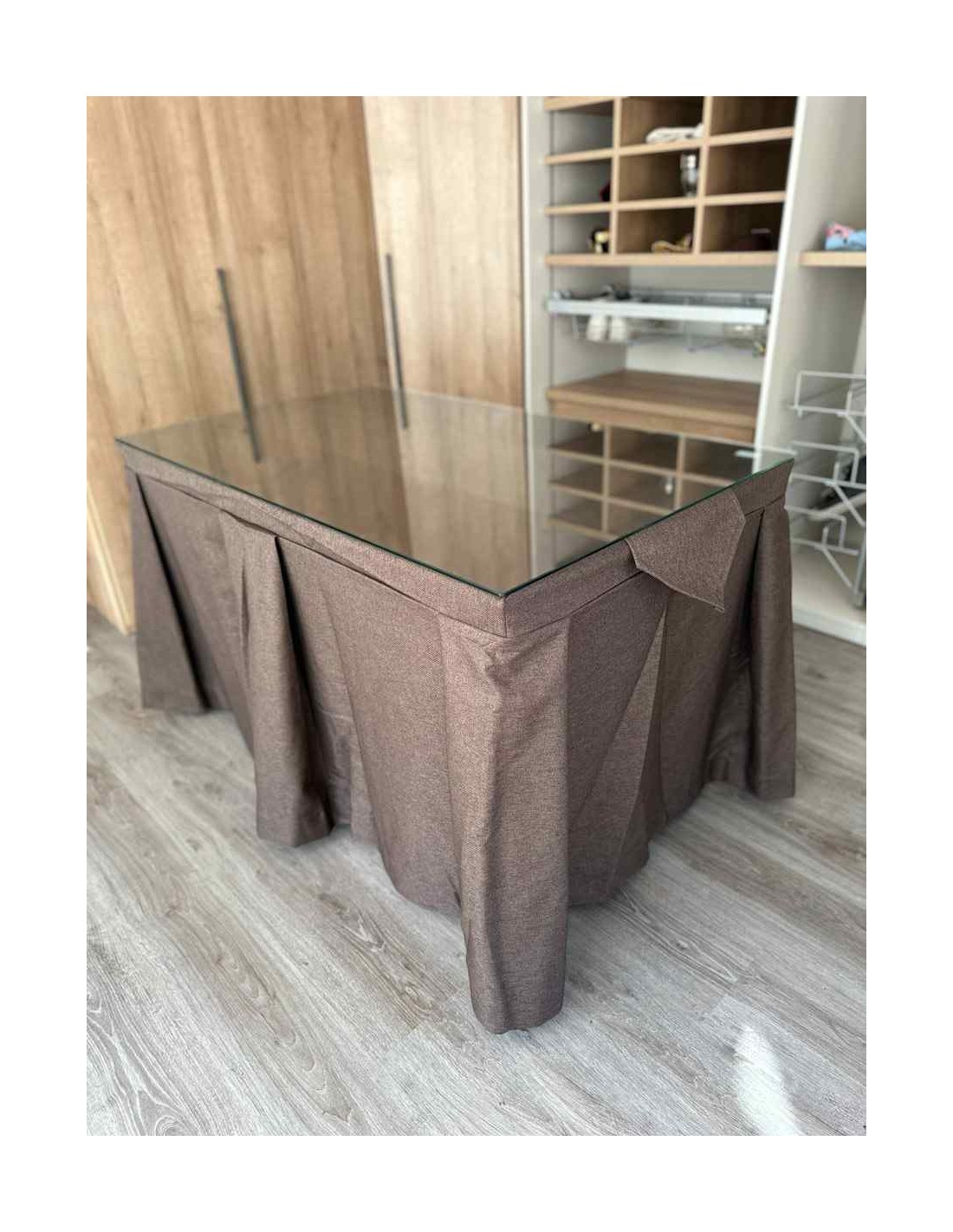 Vista su mesa de camilla con esta ropa de gran calidad y diseño italiano. Su tejido antimanchas le dará tranquilidad en el caso de que tenga pequeños o mascotas en casa. Este tipo de enaguas repele todo tipo de líquidos y evita, de esta manera, que la mancha llegue a quedarse impregnada en el tejido.
