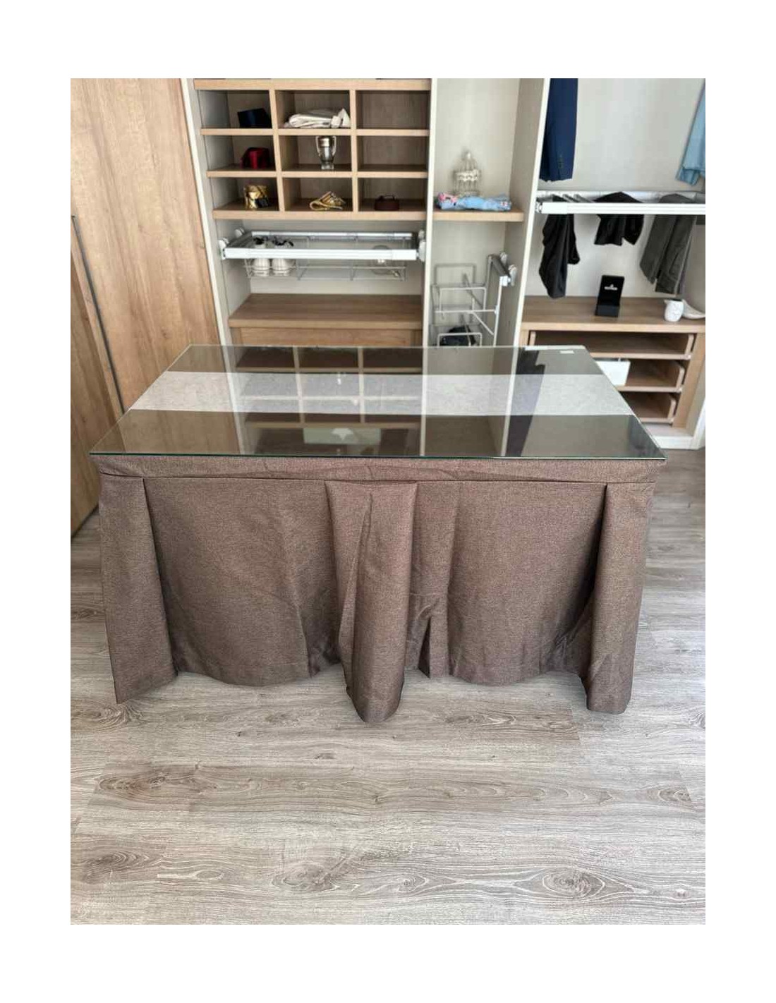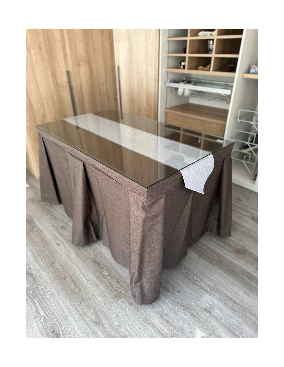Vista su mesa de camilla con esta ropa de gran calidad y diseño italiano. Su tejido antimanchas le dará tranquilidad en el caso de que tenga pequeños o mascotas en casa. Este tipo de enaguas repele todo tipo de líquidos y evita, de esta manera, que la mancha llegue a quedarse impregnada en el tejido.