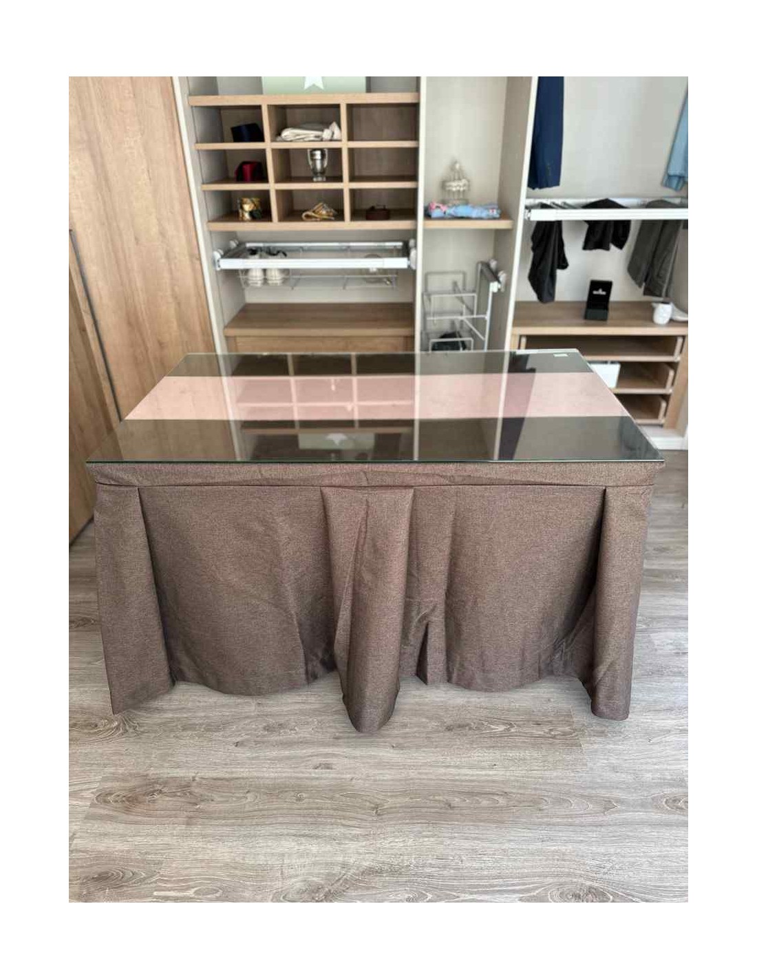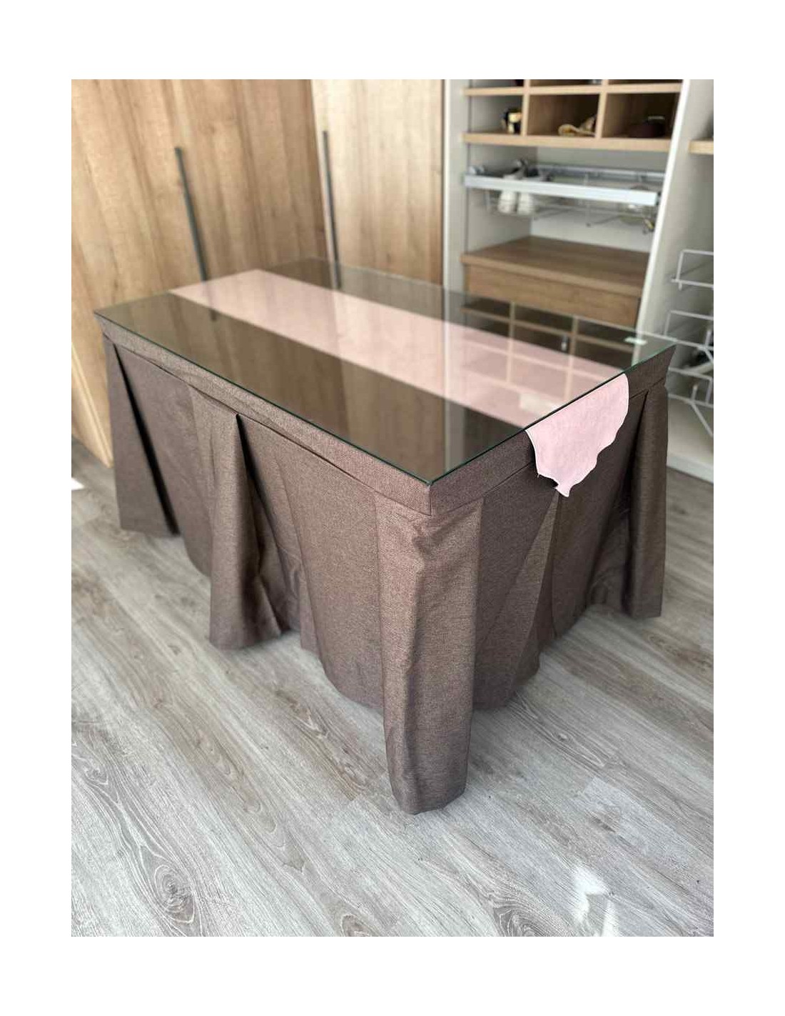 Vista su mesa de camilla con esta ropa de gran calidad y diseño italiano. Su tejido antimanchas le dará tranquilidad en el caso de que tenga pequeños o mascotas en casa. Este tipo de enaguas repele todo tipo de líquidos y evita, de esta manera, que la mancha llegue a quedarse impregnada en el tejido.